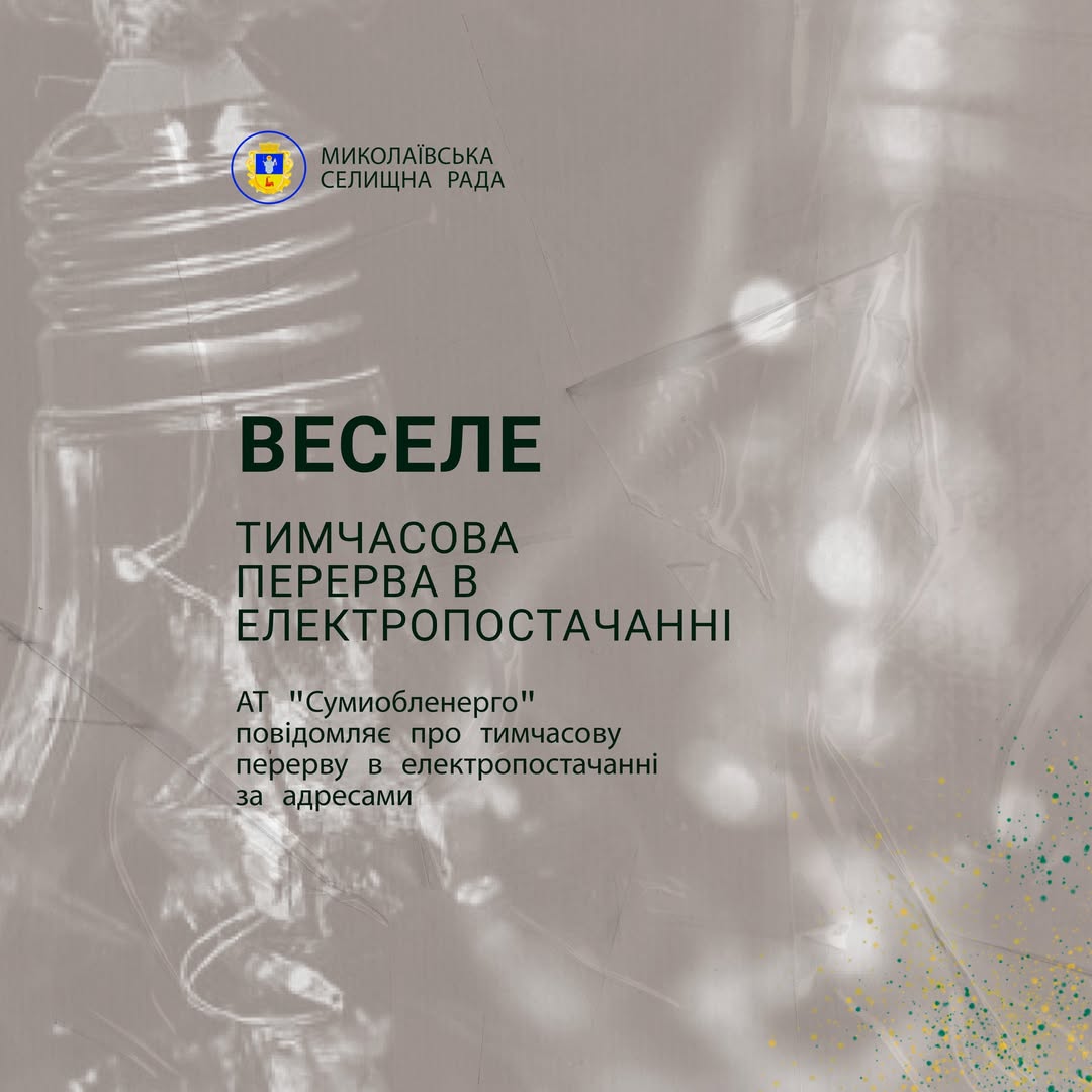 АТ “Сумиобленерго” повідомляє про тимчасову перерву в електропостачанні за адресами: