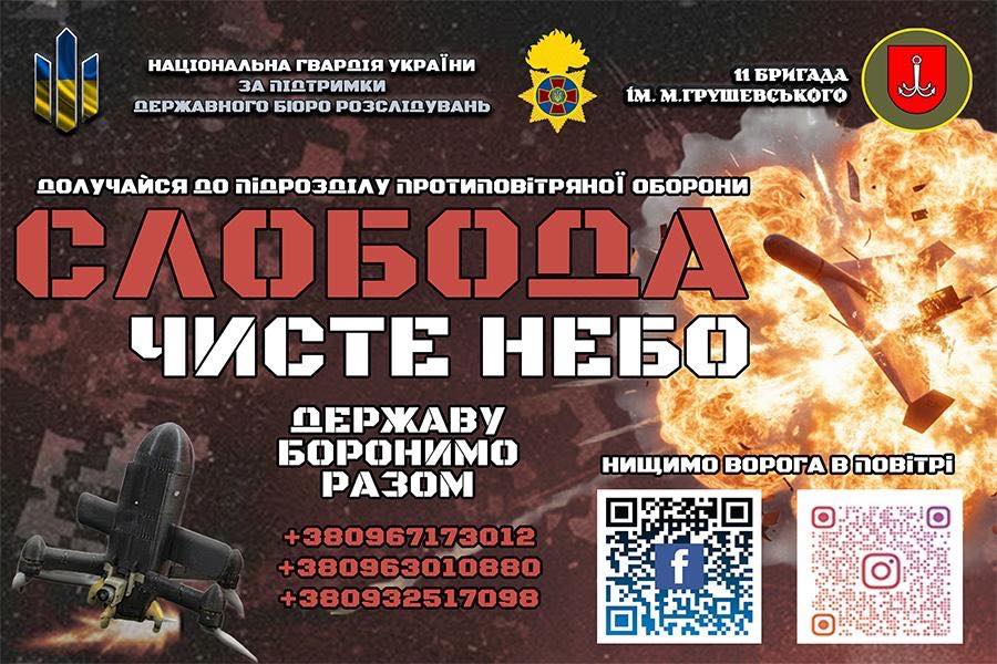 🔥 Батальйон протиповітряної оборони «СЛОБОДА» – стань на захист неба України разом з 11 бригадою ім. М. Грушевського НГУ!