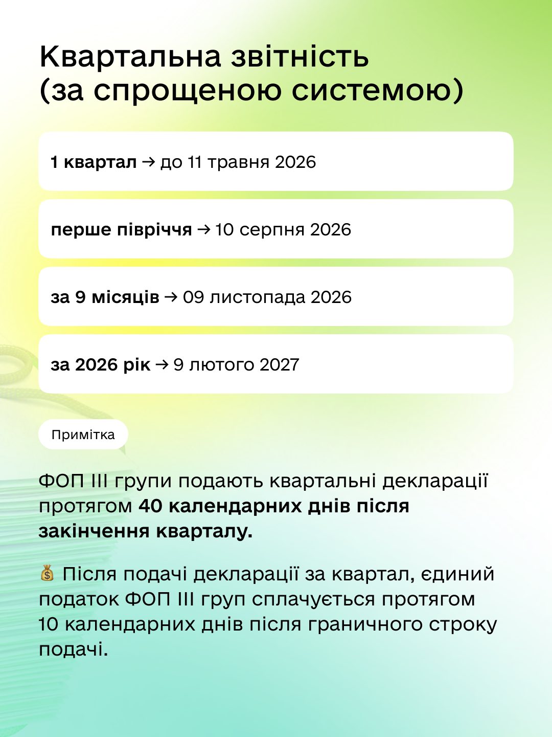 Тому підготували календар важливих дат для ФОП, щоб ви вчасно подавали декларації та сплачували ЄСВ без стресу. А всі оплати можна здійснити через застосунок Дія.