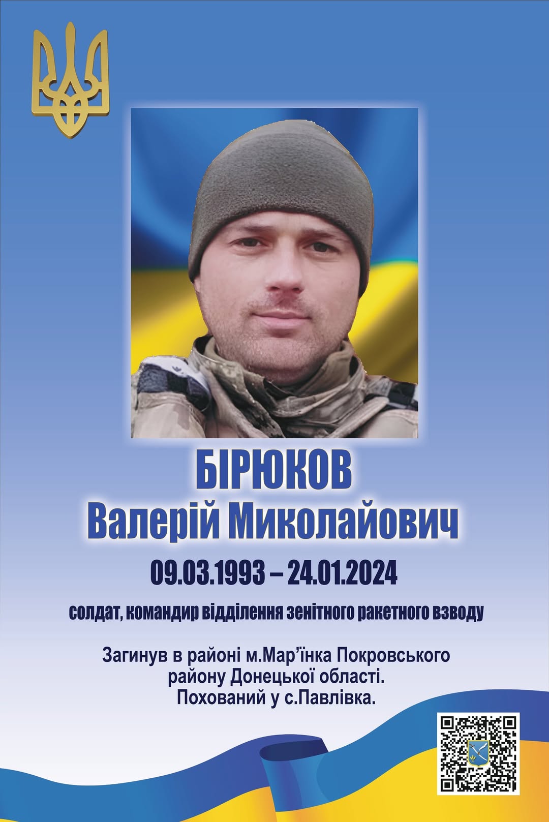 Валерій Миколайович Бірюков віддав найдорожче – своє життя – за Україну, за нашу свободу, за право жити під мирним небом.
