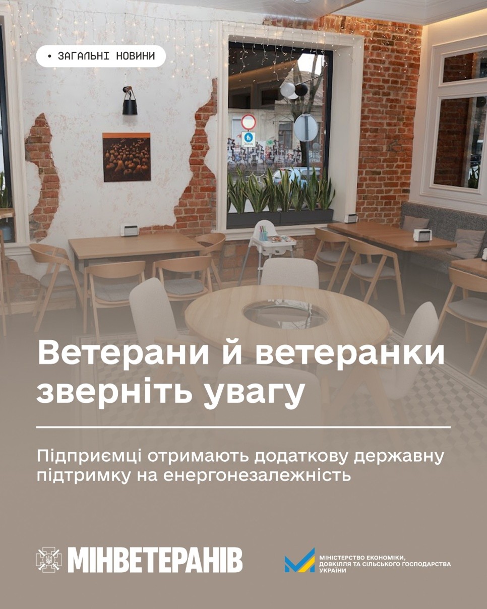 Ці рішення Уряду мають допомогти малому та середньому бізнесу, зокрема й ветеранам та ветеранкам-підприємцям, продовжувати працювати, виконувати функції пунктів незламності та зберігати робочі місця у період найскладніших енергетичних умов.