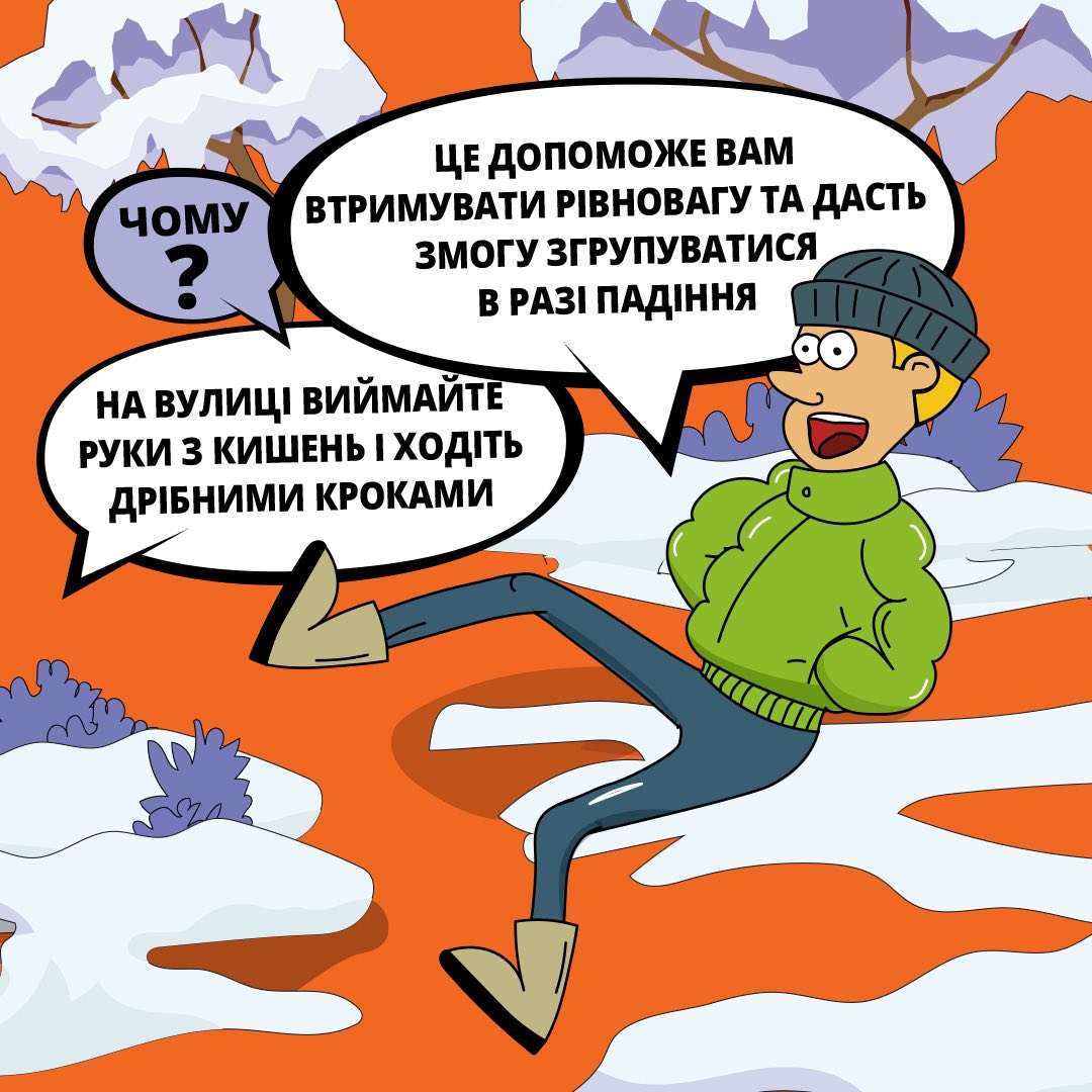 Також радимо максимально обережно пересуватися тротуарами: виймайте руки з кишень, робіть дрібні кроки та обирайте надійне зимове взуття.