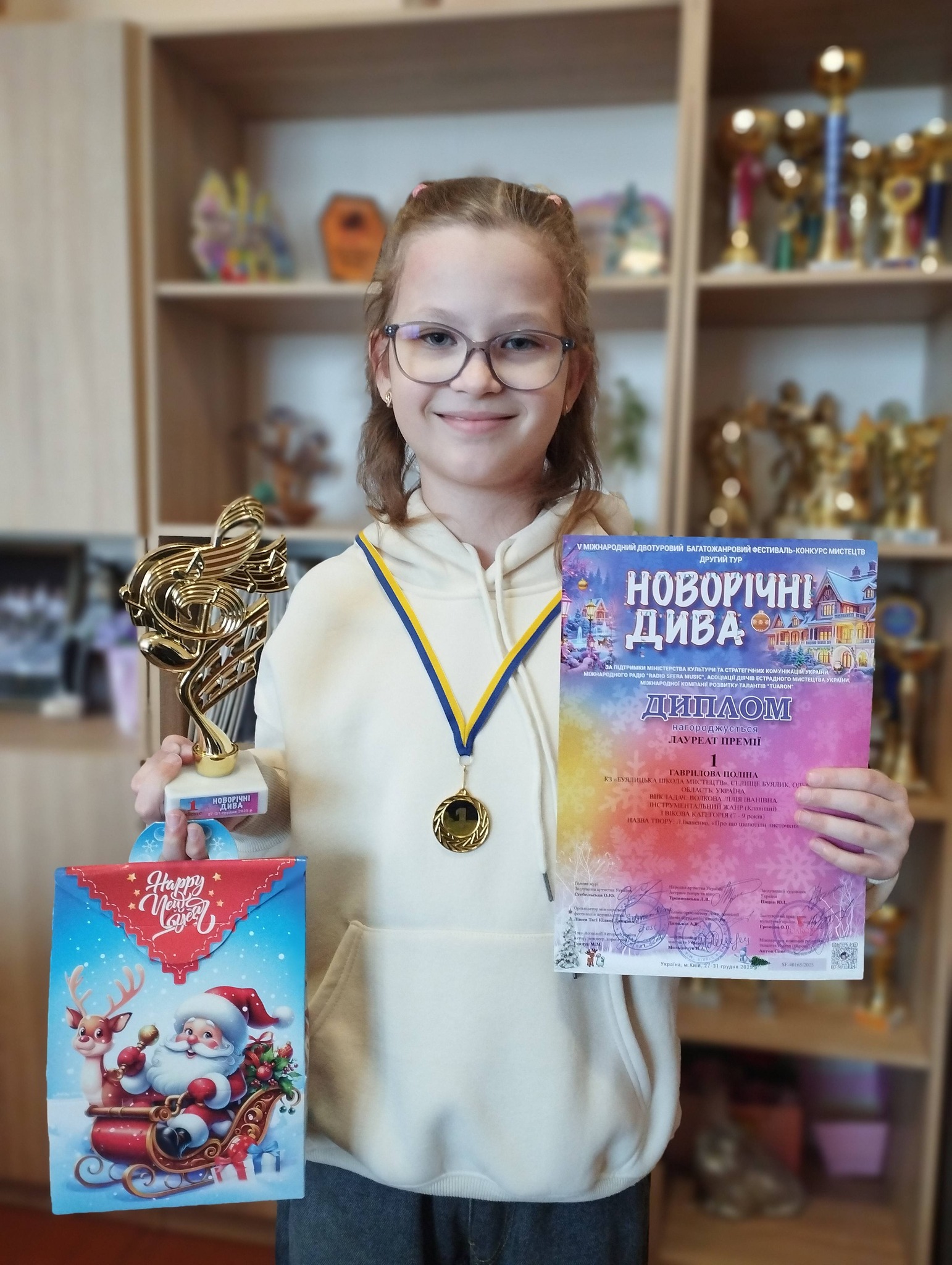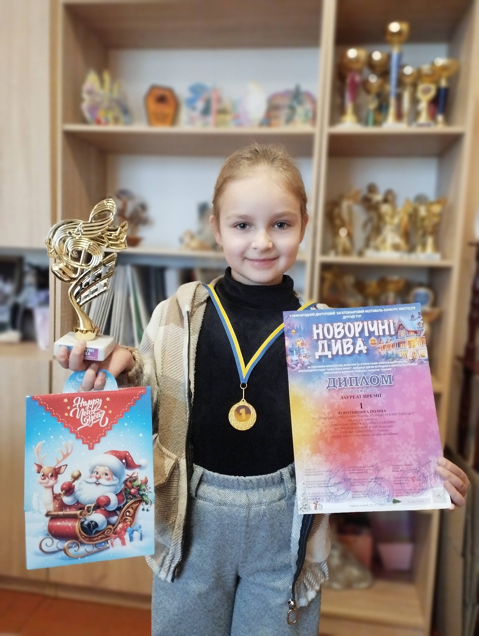 Вкотре радіємо за наших талановитих учнів!!! Вони всі посіли 1 місця і були нагороджені медалями, дипломами, кубками, солодкими подарунками за участь у V Міжнародному двотуровому багатожанровому фестивалі-конкурсі мистецтв “Новорічні дива” м. Київ: