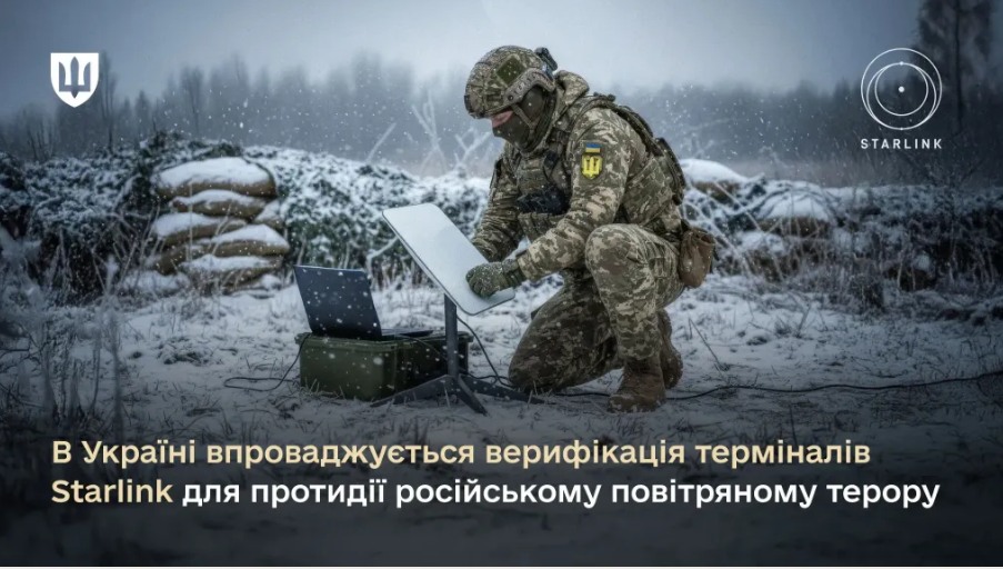В УКРАЇНІ ВПРОВАДЖУЄТЬСЯ ВЕРИФІКАЦІЯ ТЕРМІНАЛІВ STARLINK ДЛЯ ПРОТИДІЇ РОСІЙСЬКОМУ ПОВІТРЯНОМУ ТЕРОРУ