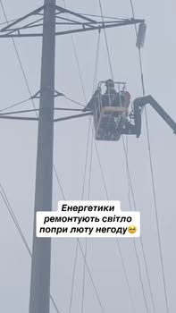 Енергетики в цей час ремонтують лінію в полі на висоті 6 поверху багатоповерхівки – попри крижаний вітер та погану видимість.