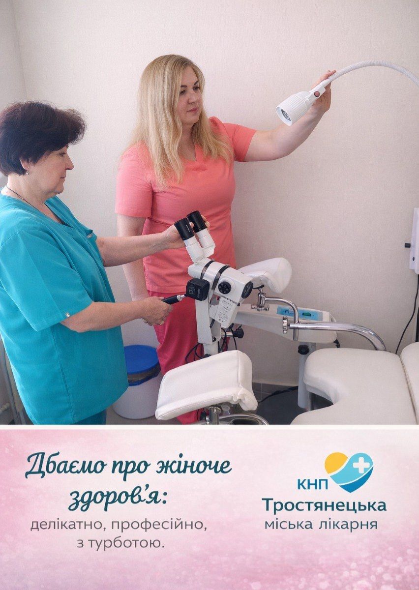 У консультативно-діагностичній поліклініці Тростянецької міської лікарні працює 2 сучасних гінекологічних кабінети, розташовані вони на другому поверсі поліклініки.