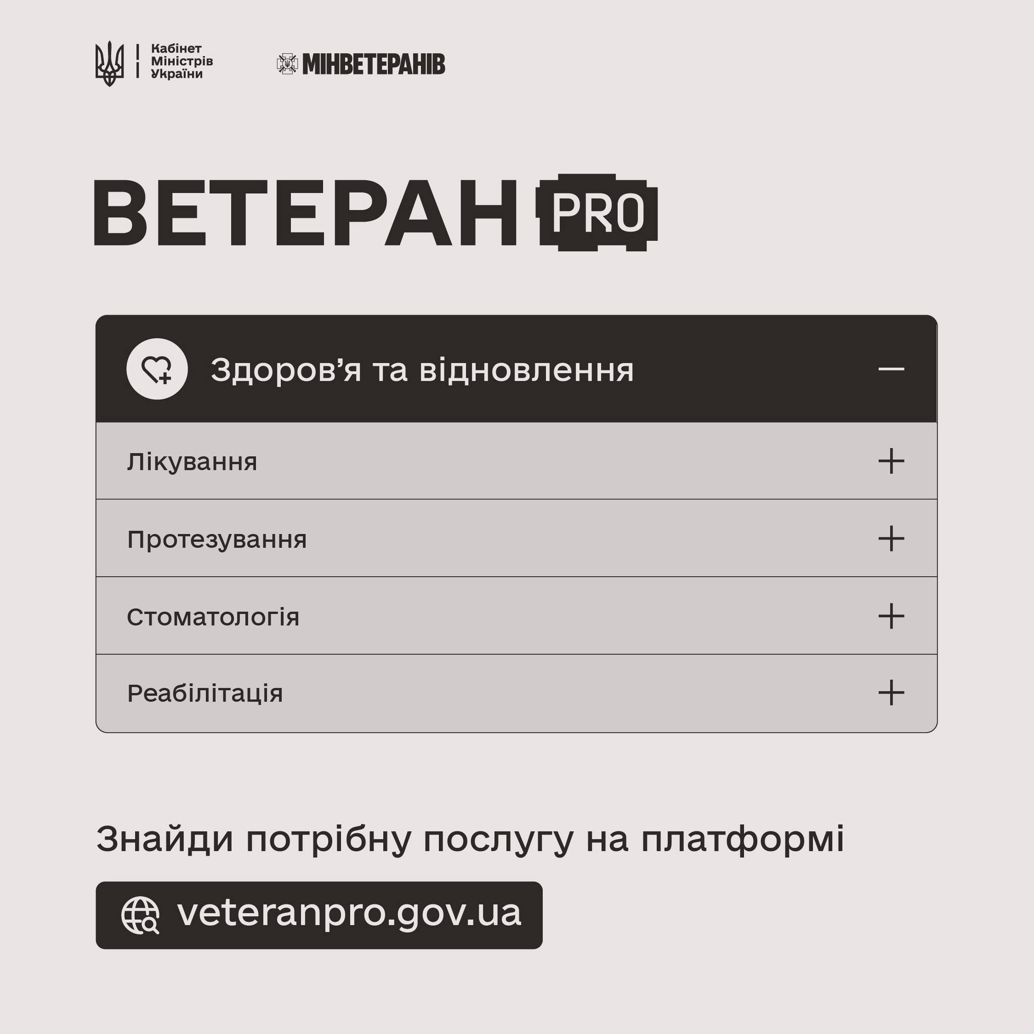 💼 На платформі Ветеран Pro зібрана перевірена інформація про державні сервіси: лікування й реабілітацію, фінансову підтримку, пільги, навчання, перекваліфікацію, можливості для роботи чи власної справи, а також про більше послуг.