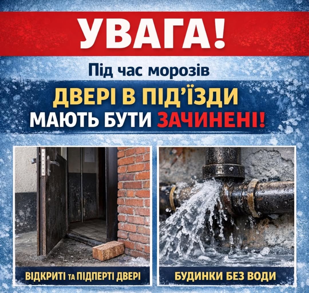У період сильних морозів наполегливо просимо тримати двері в під’їзди постійно зачиненими.