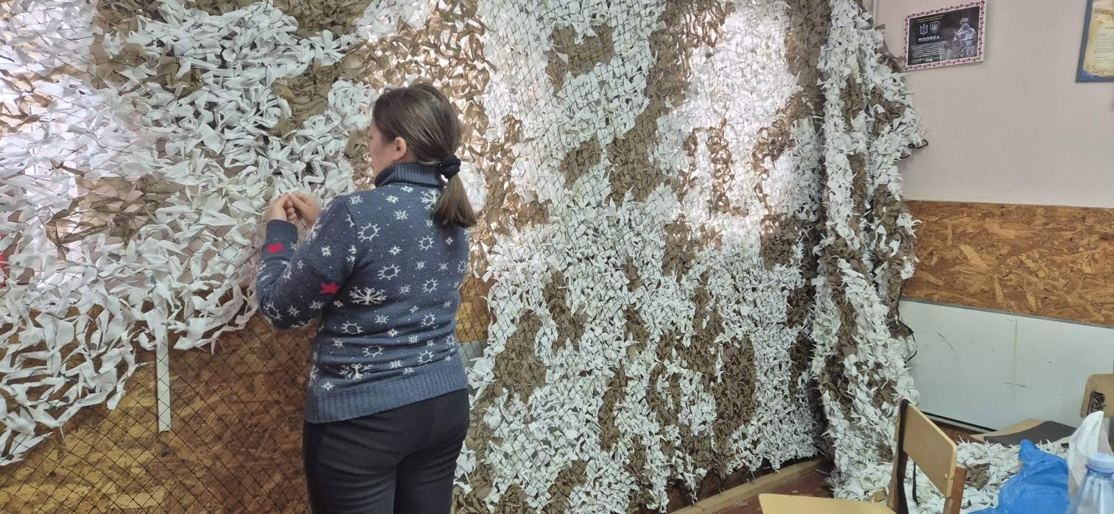 «Як 26-го (лютий 2022 року) стали до роботи – так і досі стоїмо», — з усмішкою каже Діана Шевчук. До всього, плести сітки допомагають й діти волонтерок — справжня родинна справа.