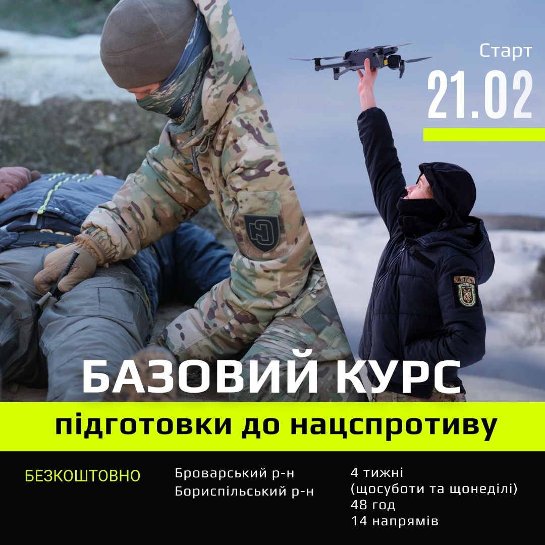 🛡 Київський обласний Центр підготовки населення до національного спротиву запрошує жителів регіону на базовий курс, який стартує 21 лютого.