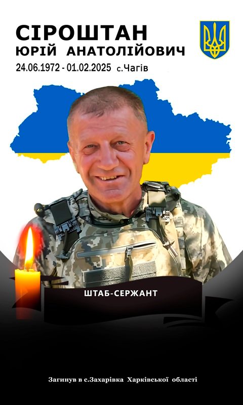 У червні 2024 року наш земляк став на захист держави від російського окупанта. Штаб-сержант Сіроштан Ю. служив у 154-й окремій механізованій бригаді командиром машини групи дорожньої техніки інженерно-дорожного взводу інженерно-технічної роти групи інженерного забезпечення. Війна безжально обірвала життя 52-річного воїна. Залишилися у скорботі дружина, син і донька, пам’ятаючи його посмішку, якою намагався підбадьорити, обіцянку, що обов’язково повернеться аби здійснити давню мрію про спільну відпустку в Карпатах…