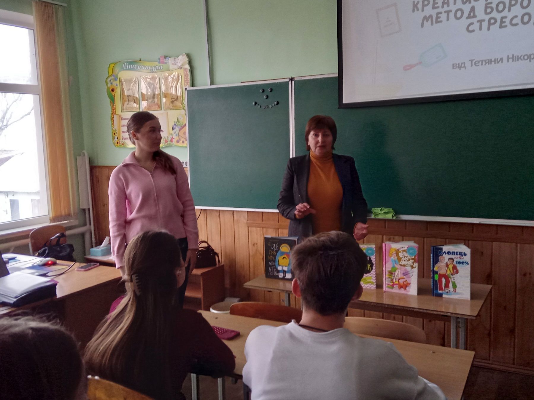 Для учнівської молоді міського Ліцею «Лідер» в рамках програми завідуюча відділом обслуговування дітей та юнацтва Публічної бібліотеки Алла Кравченко спільно з Тетяною Нікорою, членкинею молодіжної ради при Білгород-Дністровській міській раді, підготували та провели презентацію-пораду «Психологічна підтримка в кризовій ситуації. Креативні техніки, як метод боротьби зі стресом».