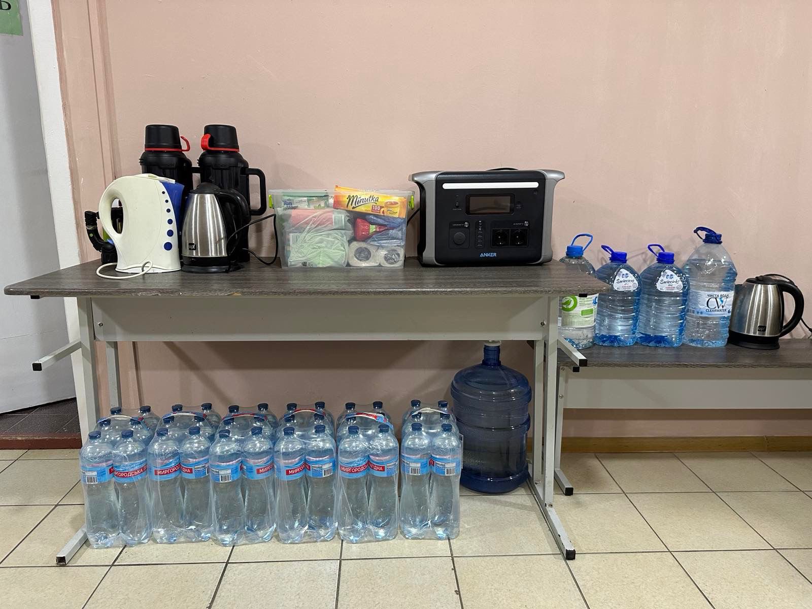 • гаряча вода та чайники, щоб зігрітися