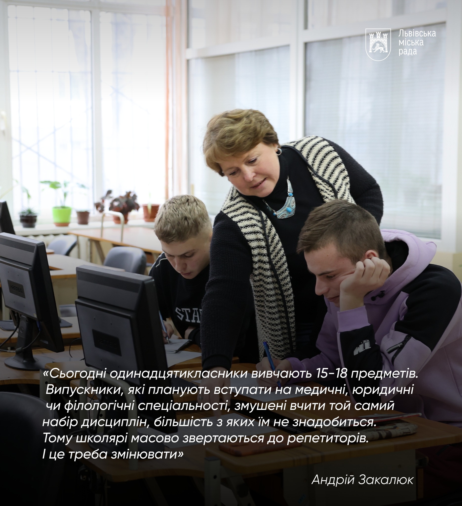 Можемо залишити усе, як є, і радіти, що у нас все добре. Але у нас не все ідеально з освітою, особливо з 11 класом — які ходять не до школи, а до репетиторів.