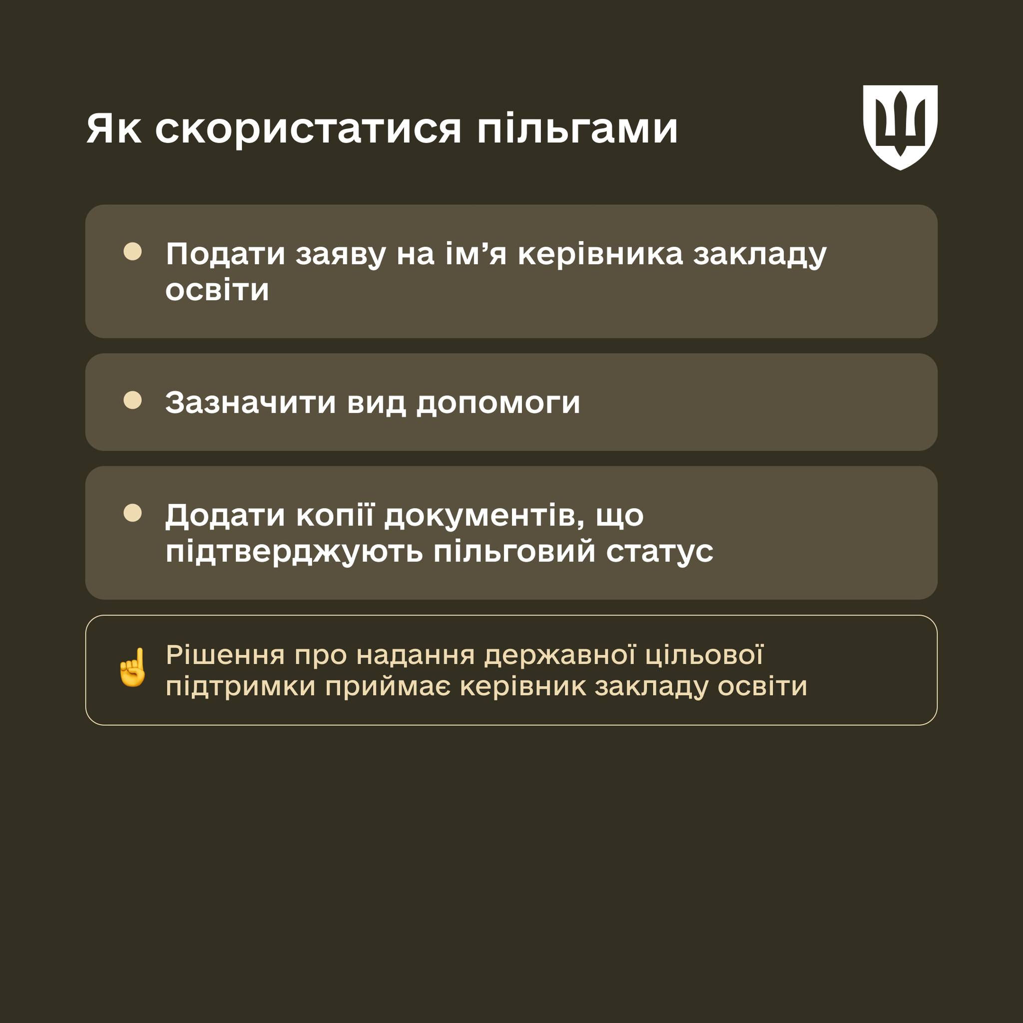 🏫 А дітям військовослужбовців за місцем проживання їхніх сімей у першочерговому порядку надаються місця у загальноосвітніх та дошкільних навчальних закладах і дитячих оздоровчих таборах незалежно від форм власності.