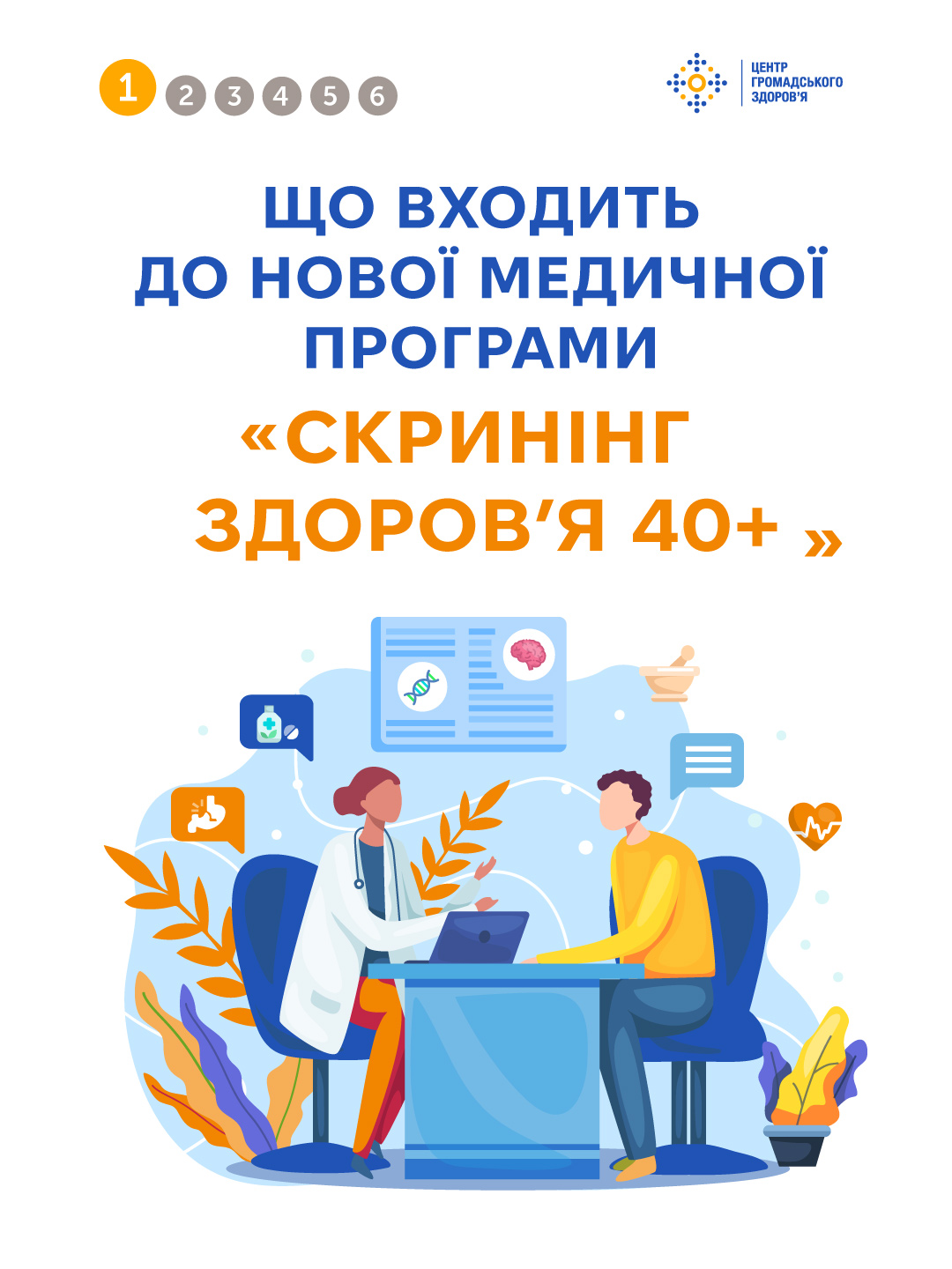 Детально про те, які обстеження входять до програми «Скринінг здоров’я 40+» можна дізнатися за посиланням: https://phc.org.ua/news/scho-vkhodit-do-novoi-medichnoi-programi-skrining-zdorovya-40