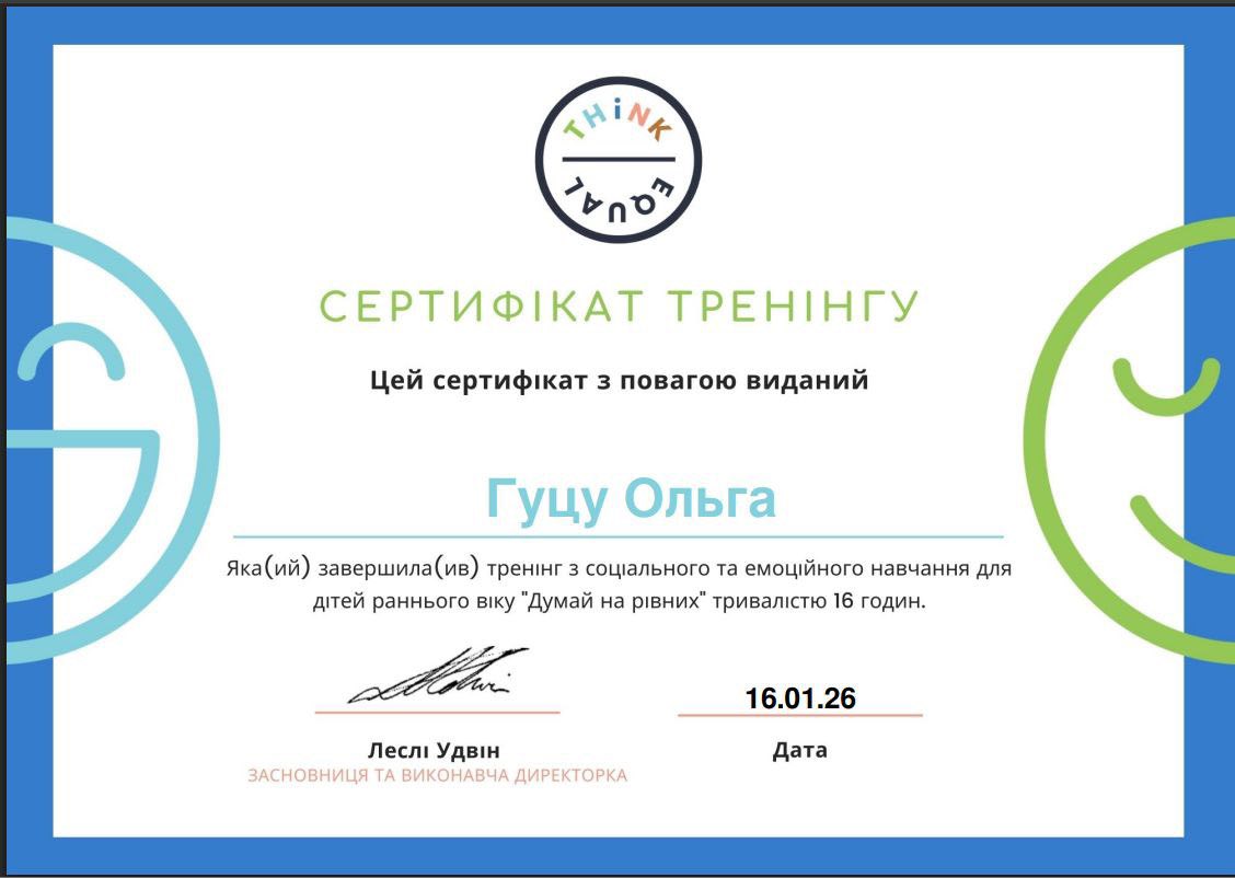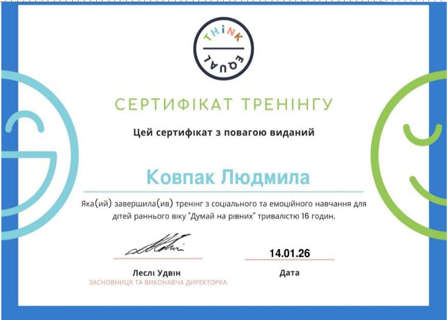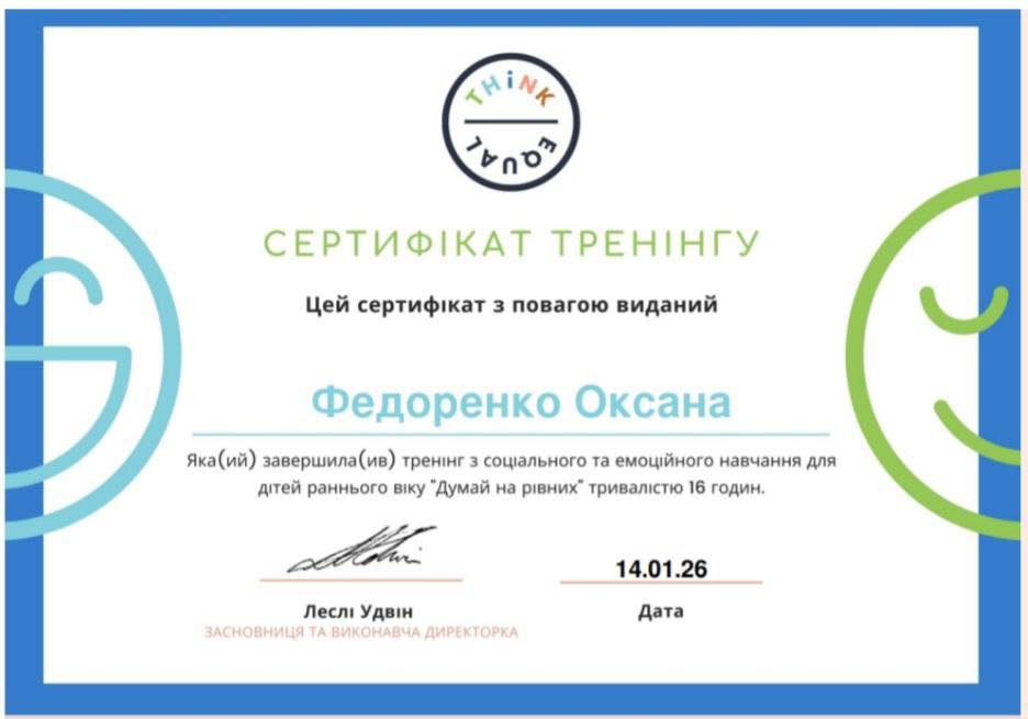 Вже з лютого здобуті знання та інструменти програми ThinkEQ будуть впроваджуватися в освітній процес закладу, щоб ще ефективніше підтримувати емоційний розвиток дітей, формувати атмосферу довіри, поваги та рівності.