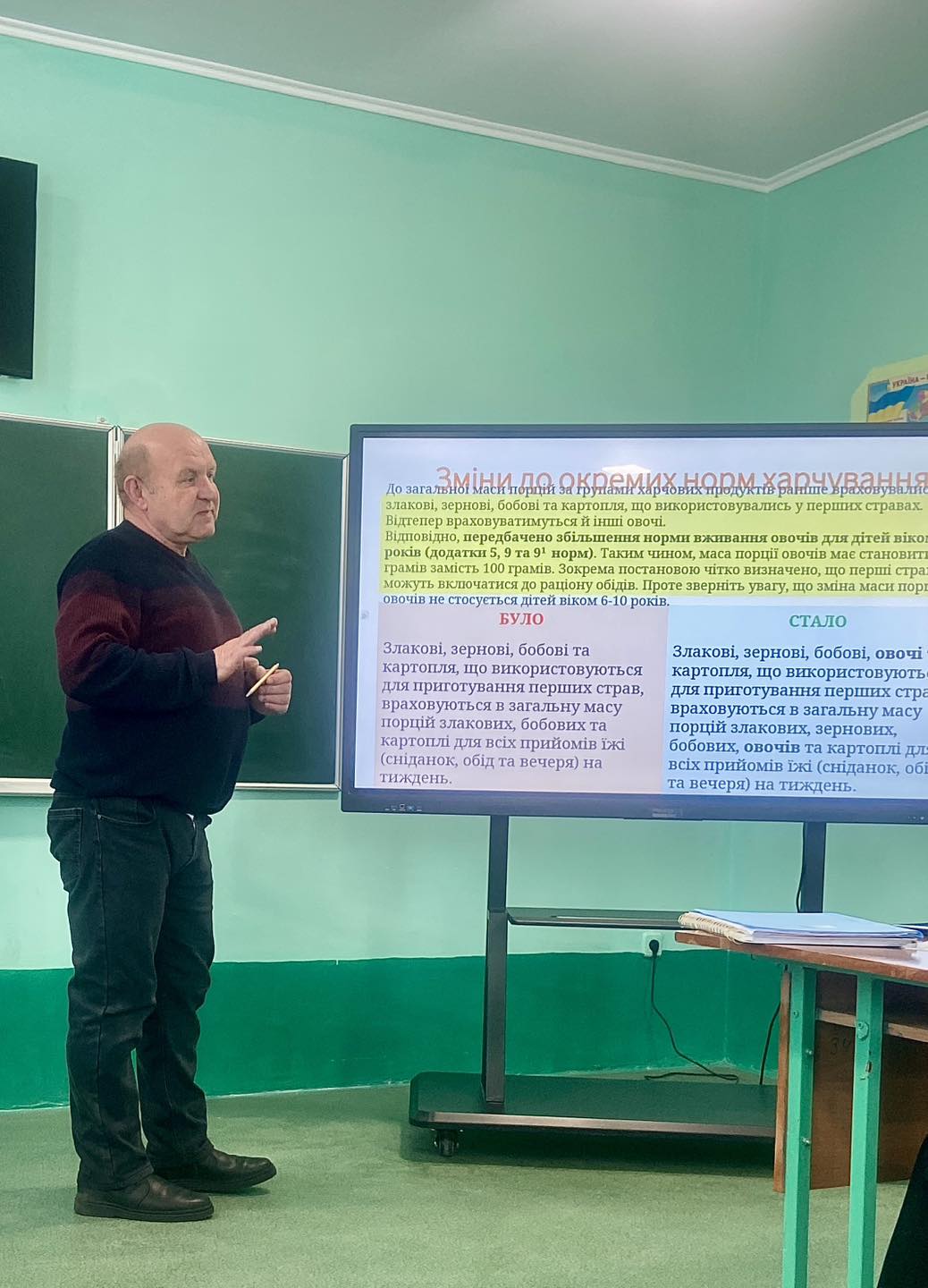 Під час зустрічі говорили про оновлені вимоги до організації харчування відповідно до постанови КМУ №305, дотримання системи безпечності харчових продуктів НАССР, а також обговорили формування єдиного весняного меню для закладів загальної середньої та дошкільної освіти.