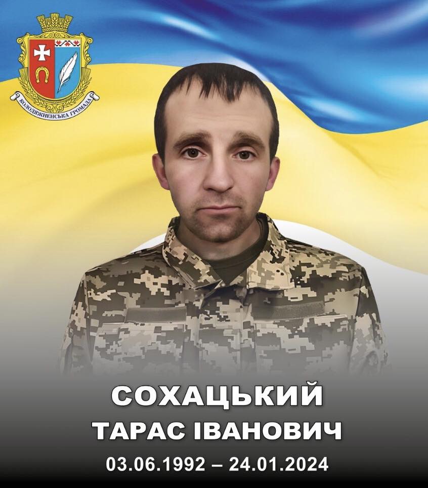 Сьогодні, 24 січня 2026 року, закликаємо вшанувати світлу пам’ять Захисника Тараса Івановича Сохацького із Білашева: цього дня виповнюються другі роковини його загибелі.