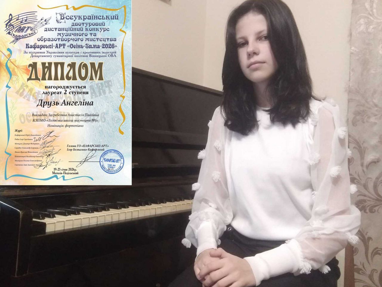 У номінації «Фортепіано» лауреатом ІІ ступеня стала Друзь Ангеліна. Підготувала ученицю викладач Загребельна Анастасія Павлівна.