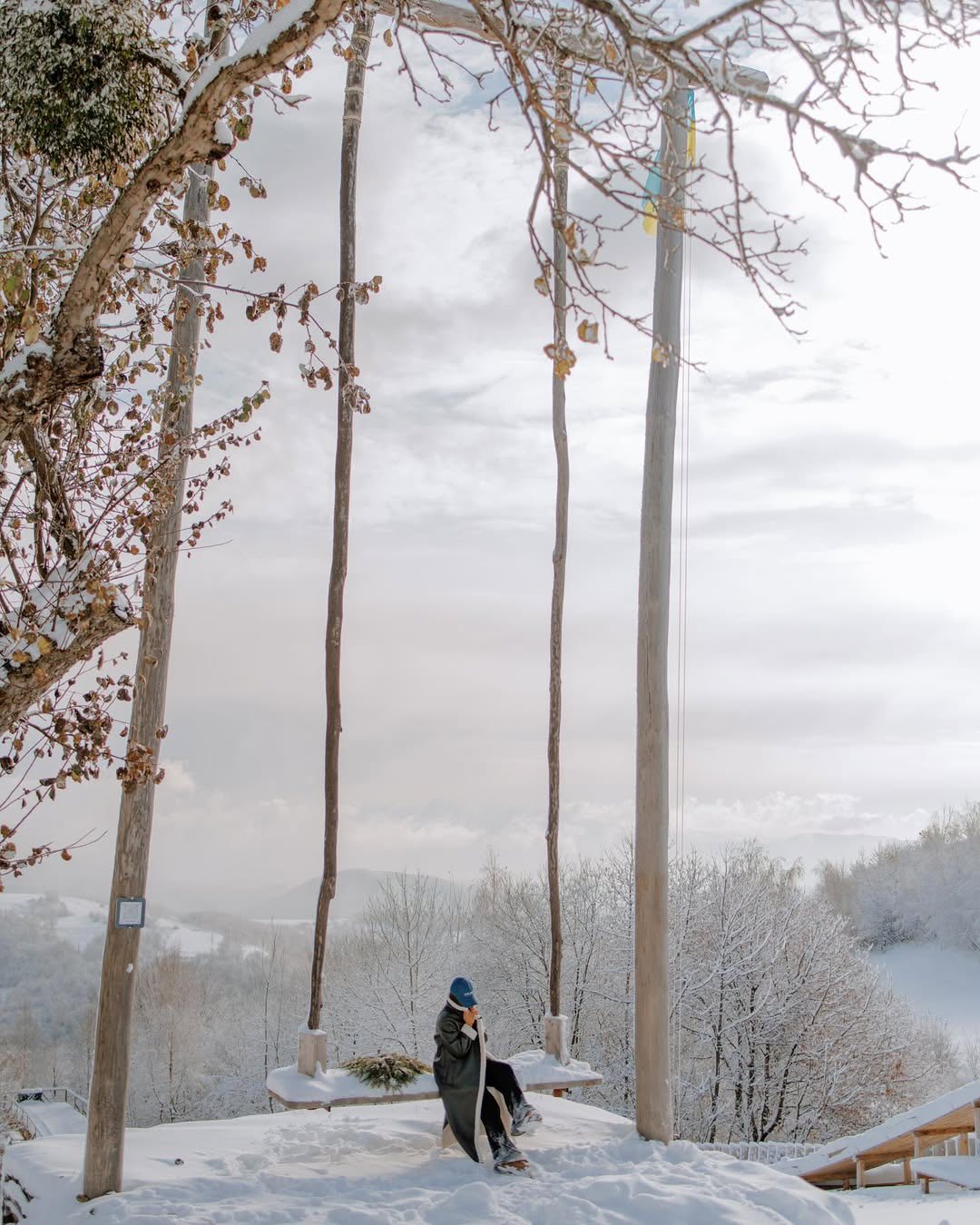 Гойдалка виготовлена із суцільного бука та встановлена на висоті 649 метрів над рівнем моря. Її висота становить 9 метрів 45 сантиметрів, що у 2022 році стало національним рекордом України як найвища гойдалка країни.