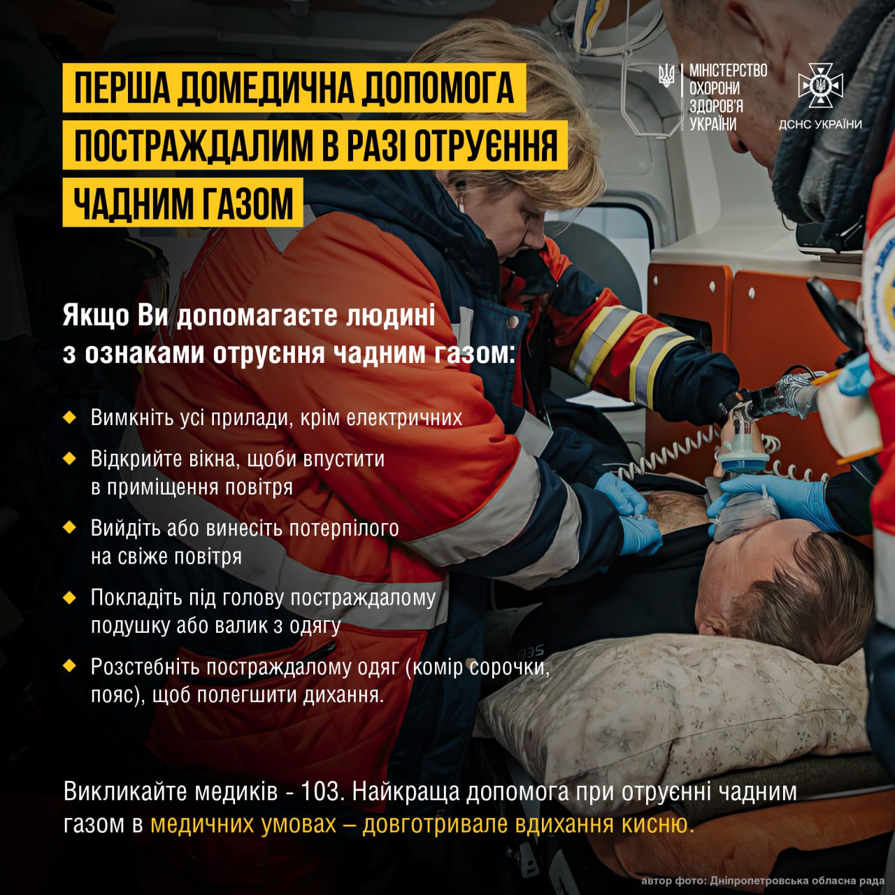 Міністерство охорони здоров’я України та ДСНС України нагадують, як діяти та допомогти постраждалим у разі отруєння чадним газом, а також як запобігти отруєнню.
