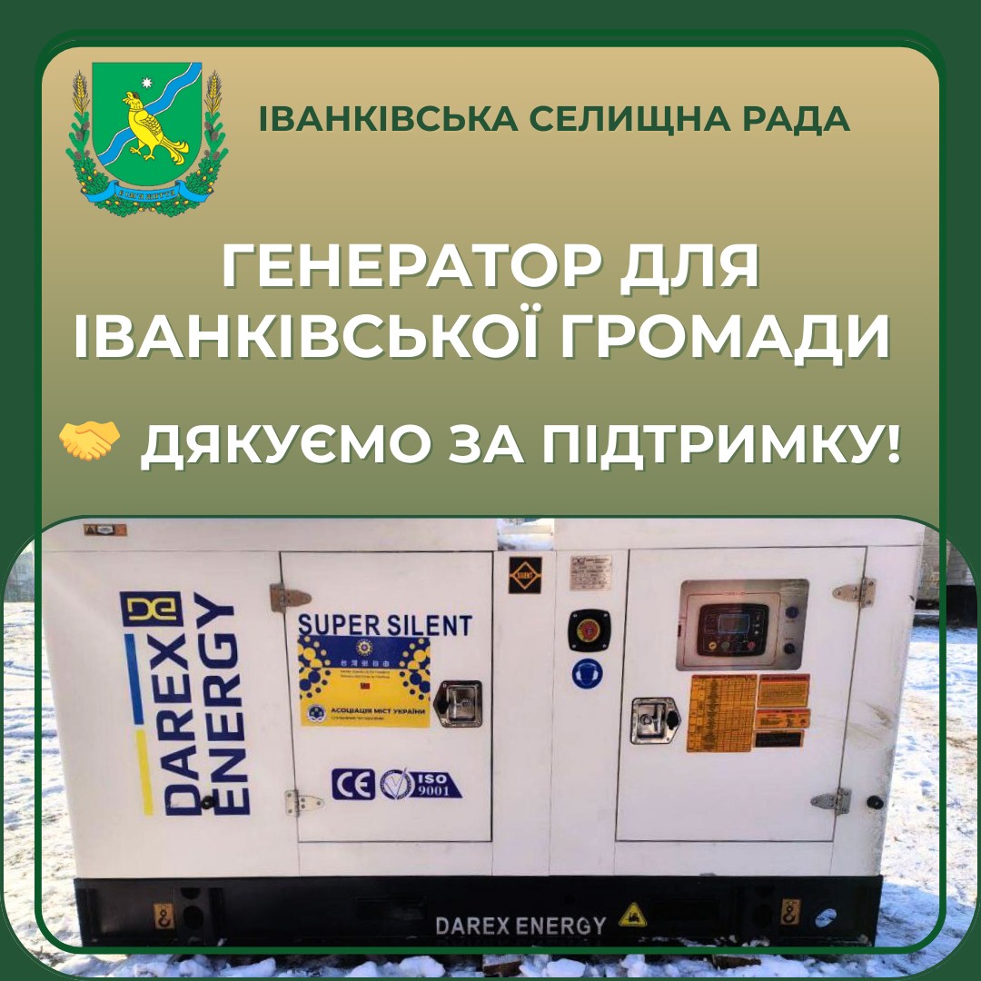 Іванківська громада висловлює вдячність Всеукраїнській асоціації органів місцевого самоврядування «Асоціація міст України» та народу Тайваню за надану гуманітарну допомогу — електрогенератор для комунального підприємства Іванківської селищної ради «Іванківводоканал».