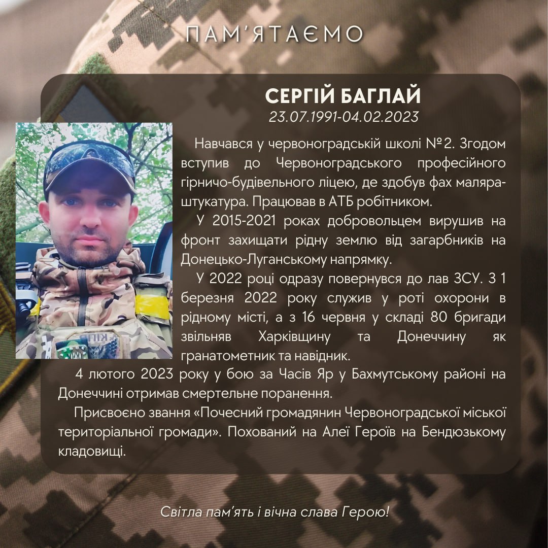 Сьогодні минає три роки з дня загибелі Захисника України Сергія Баглая. У цю скорботну мить схиляємо голову перед Героєм, який віддав найцінніше – власне життя за незалежність України та за кожного з нас.