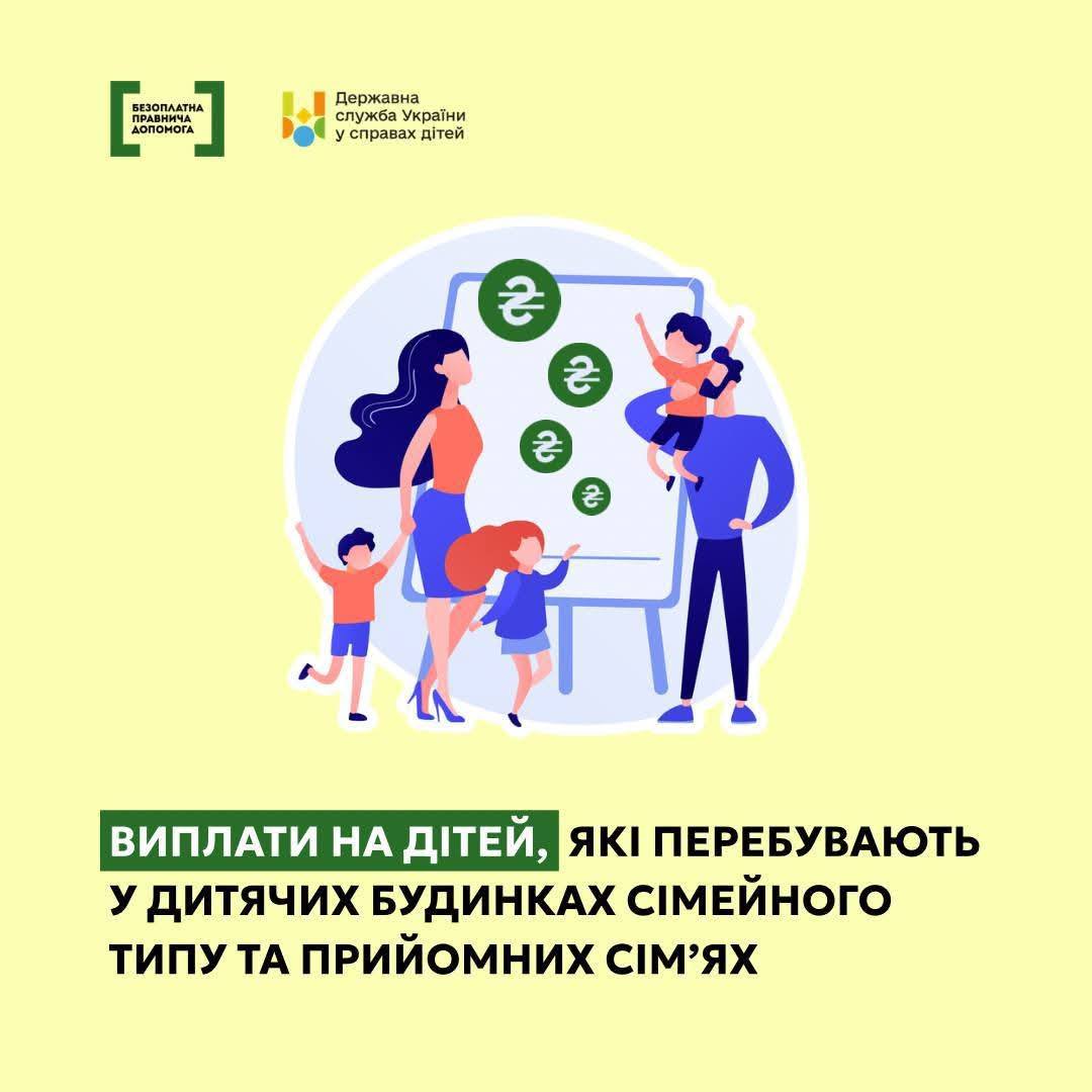 Якщо дитина виховується у дитячому будинку сімейного типу або прийомній сім’ї — їй належать державні виплати. У картках пояснюємо, кому вони призначаються, які бувають види допомоги, їхній розмір та які документи потрібні.