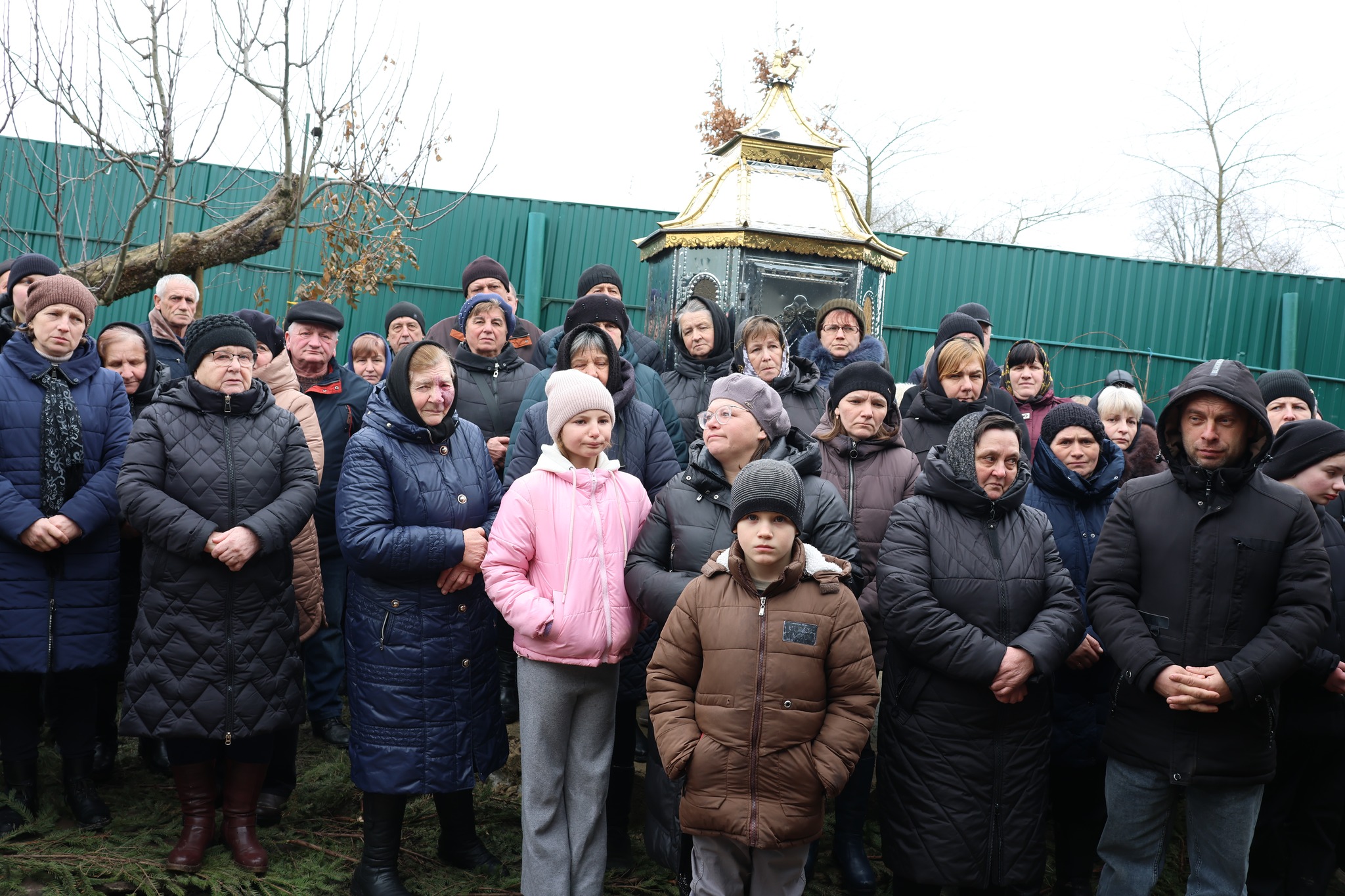 Люди чисельно зійшлися на подвір’я воїна, щоб віддати шану полеглому. Прощання розпочалося біля рідної домівки, де він проживав разом із дружиною та виховував дітей, будував плани і мріяв про мирне завтра для своєї родини та України. Саме тут, у колі найрідніших, лунала спільна молитва, звучали слова вдячності й невимовного болю.