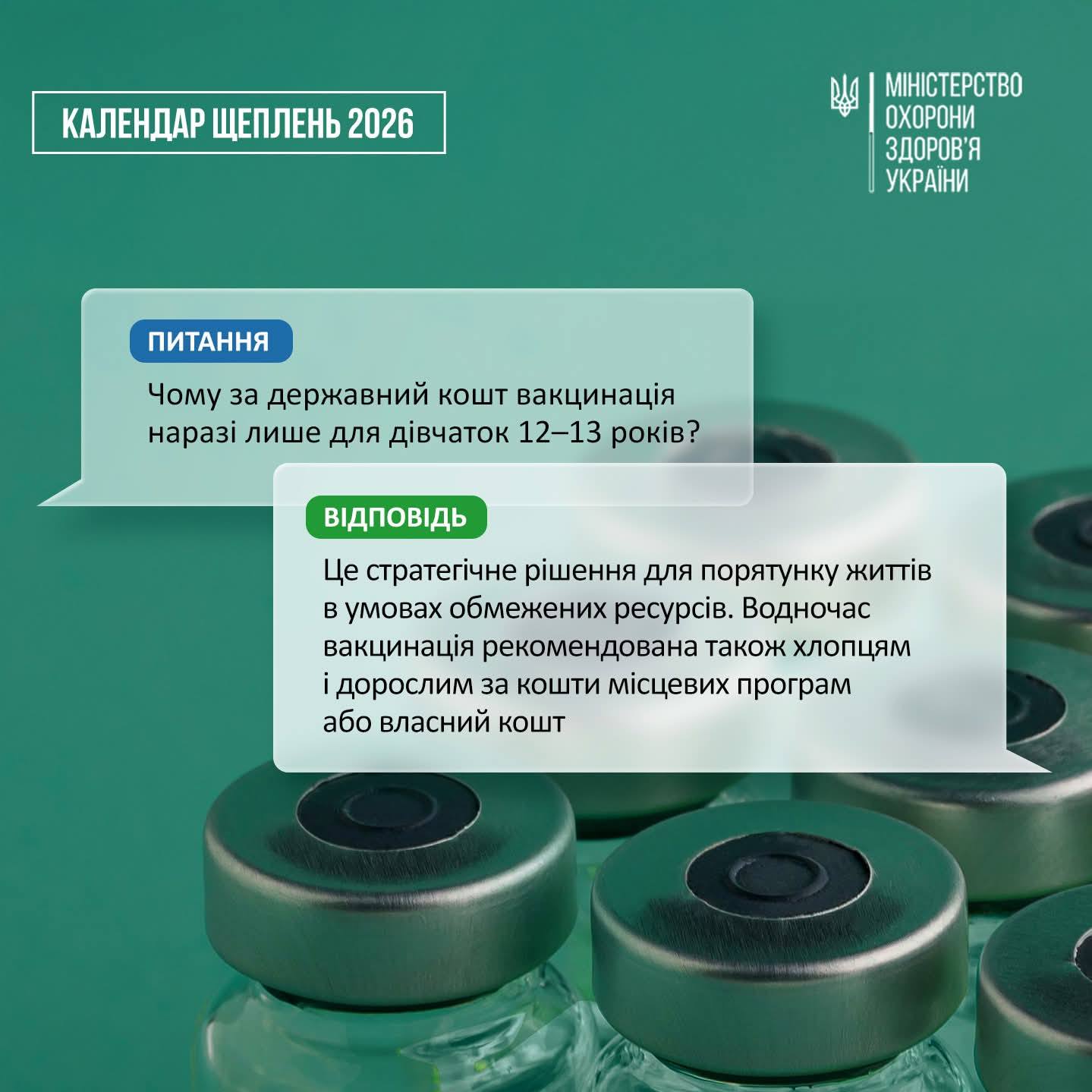 Наразі державне фінансування вакцинації проти ВПЛ спрямоване на дівчат віком 12–13 років. Це стратегічне рішення, покликане врятувати максимальну кількість життів в умовах обмежених ресурсів. Водночас, вакцинація рекомендована також хлопцям та дорослим, які можуть зробити щеплення за кошти місцевих програм або власним коштом. Це дозволяє охопити ширші верстви населення.