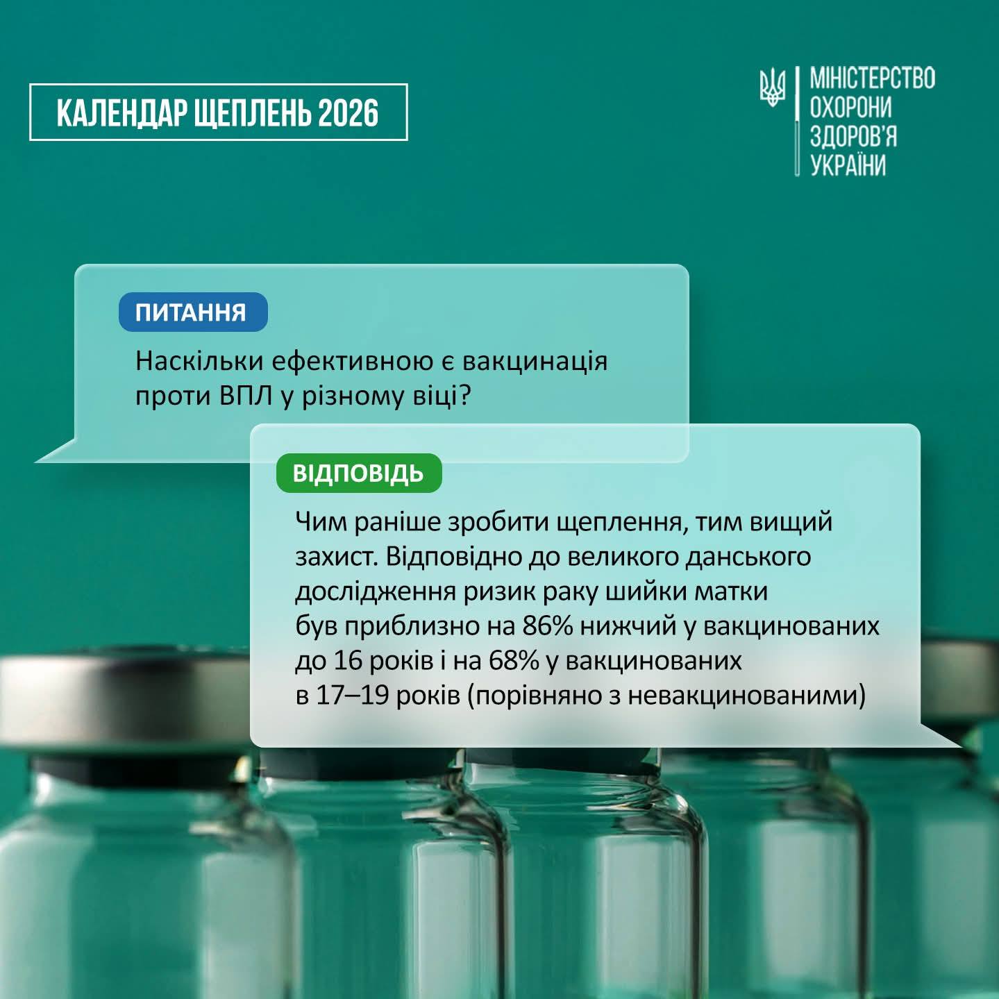 Вакцинація проти ВПЛ є найдієвішим методом захисту. Дослідження показують, що у вакцинованих дівчат ризик розвитку раку шийки матки знижується приблизно на 86%, якщо щеплення проведено до 16 років, і на 68% — якщо у віці 17–19 років. Відповідно до оновленого Календаря профілактичних щеплень, дівчата віком 12-13 років мають можливість отримати найсучаснішу 9-валентну вакцину безкоштовно. Це важливий крок для попередження розвитку серйозних захворювань.