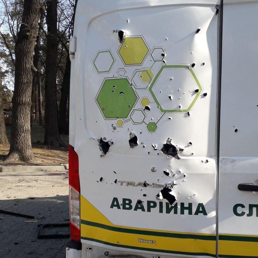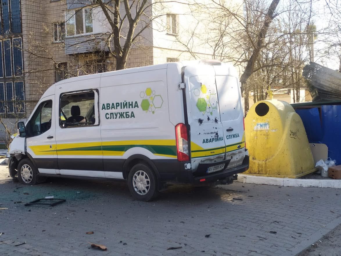 Це фото зроблене в одному з наших дворів. Того доленосного дня бригада отримала терміновий виклик: на вулиці Енергетиків спалахнула пожежа. Необхідно було негайно перекрити газ у квартирі, де проживала людина з інвалідністю. Ситуація була критичною: якщо б бригада не встигла, злетів би у повітря весь під’їзд. Паралельно з цим, окупанти, оскаженілі після невдалої спроби захопити Вокзальну, нищили все на своєму шляху. Коли головний інженер крикнув водієві аварійної служби «Тікай!», той встиг вистрибнути з салону в останні секунди. Кулі прошили саме те місце, де мить тому була голова водія. Вони дивом вижили, але ця автівка, автівка аварійної служби «Бучасервіс», зазнала критичних пошкоджень.