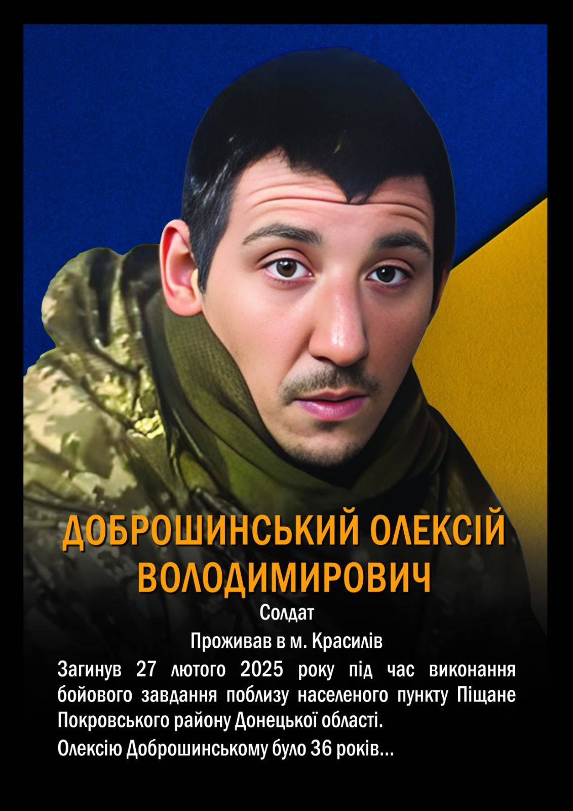 ВШАНУВАЛИ ПАМ’ЯТЬ ГЕРОЯ-ЗЕМЛЯКА: ЖИТТЄВИЙ ШЛЯХ СОЛДАТА ОЛЕКСІЯ ДОБРОШИНСЬКОГО