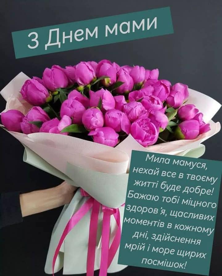Вітаємо з найтеплішим святом – Днем матері! Щиро дякуємо за безмежну любов, турботу, ласку і постійну підтримку. Нехай ваше серце завжди буде спокійним, а душа наповнена щастям. Бажаємо вам міцного здоров’я, безмежної радості в кожному дні та тепла в серці. Зі святом, дорога мамо! Нехай це світле свято принесе вам лише позитивні емоції, радісні миті та відчуття гармонії. Ми цінуємо вашу невтомну працю та відданість, з якою ви піклуєтесь про свою родину. Ваша мудрість та ніжність надихають нас на кращі звершення.