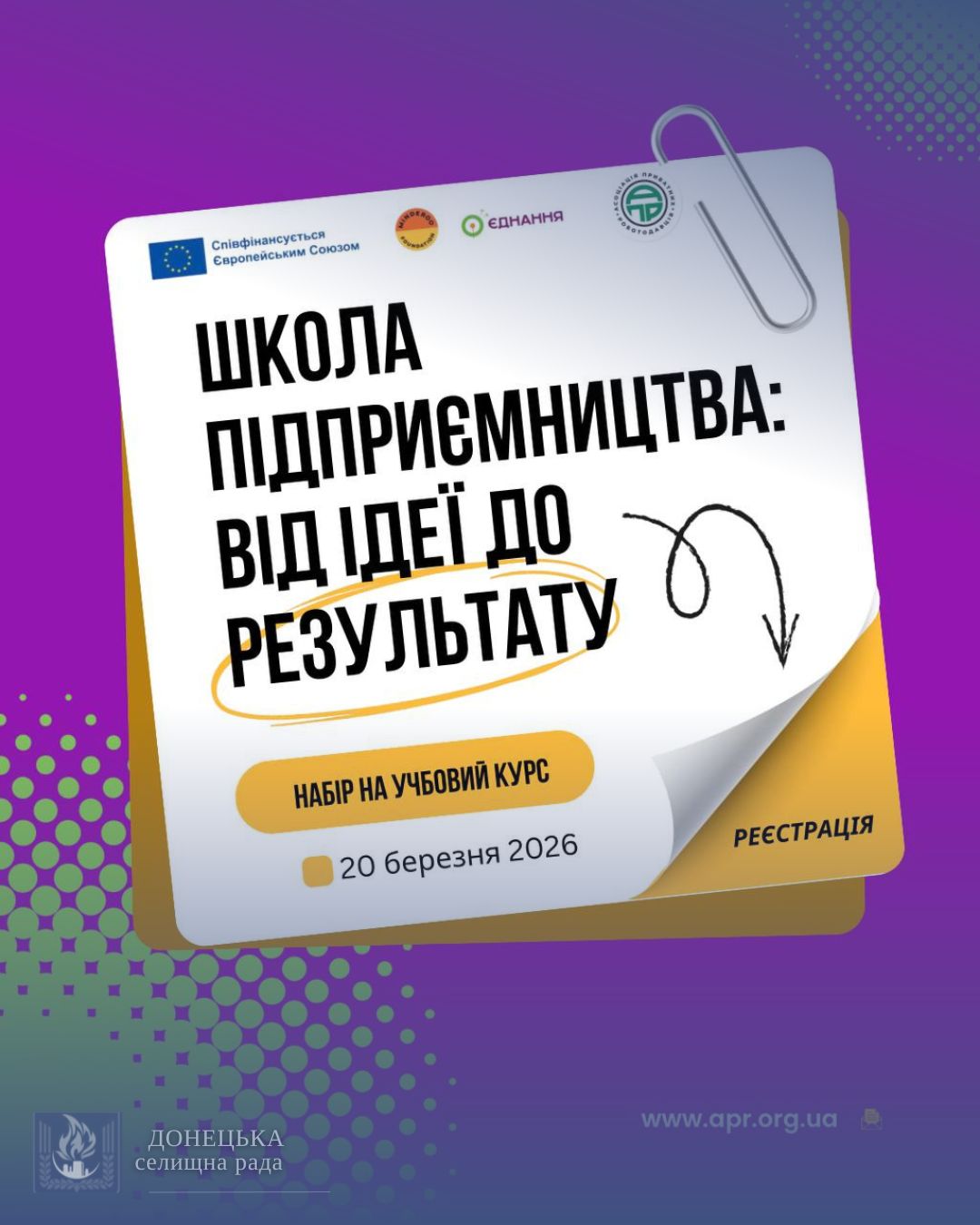 Реєстрація на курс «Школа підприємництва» відкрита до 18:00 17 березня 2026 року. Поспішайте подати заявку за посиланням: https://docs.google.com/forms/d/e/1FAIpQLSeHd6mwSukd1nJgt3C2959OtUTl_3_SEBfCcTmArm3X0OhDQ/viewform. Цей курс – ваш крок до успішного старту бізнесу. Розвивайте власну справу разом з нами!