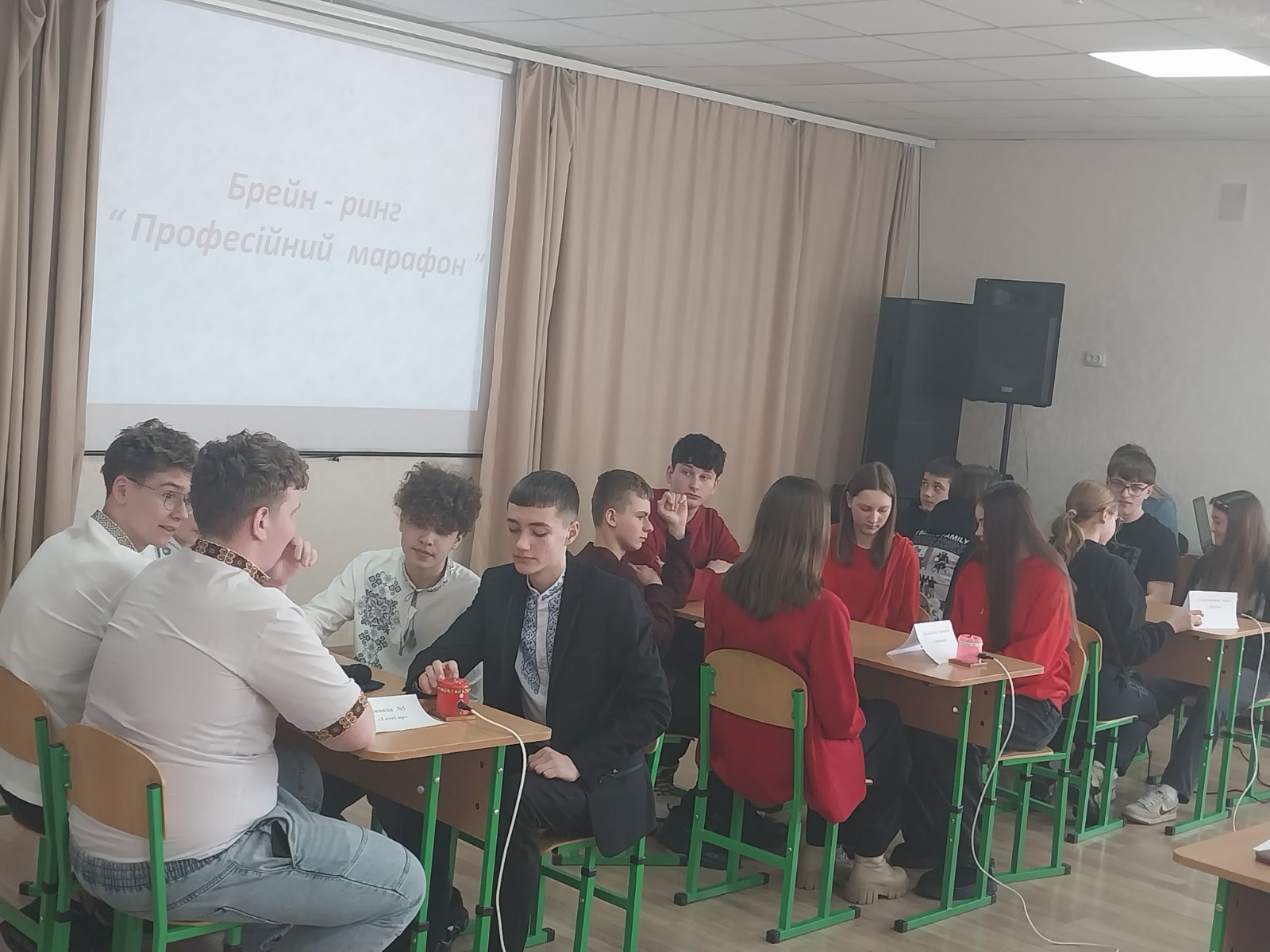 📍 Змагання проходило в напруженій атмосфері трьох півфіналів, де брало участь по три команди, та видовищного фіналу. Учасники брейн-рингу демонстрували глибокі знання про різноманітні професії, розуміння актуальних тенденцій ринку праці та необхідні навички сучасного фахівця. Вони змагалися, відповідаючи на складні запитання, розв’язуючи логічні завдання, жваво обговорюючи вимоги до різних спеціальностей та ділячись своїми найзаповітнішими мріями щодо майбутньої професії. Цей «Професійний марафон» дав змогу учням краще зрозуміти свої інтереси та здібності.