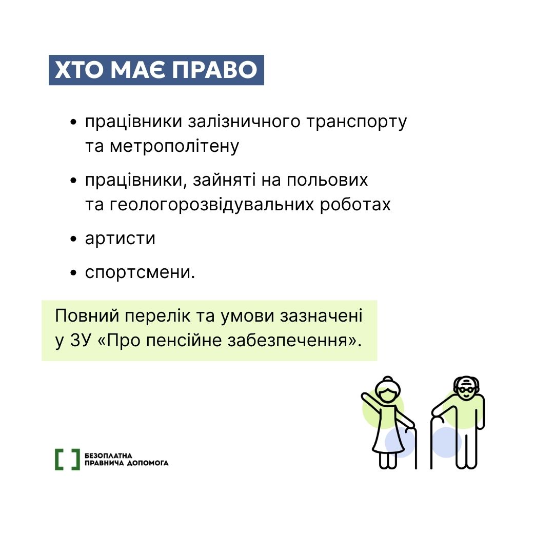 Особливу увагу слід звернути на можливість отримання безоплатної правничої допомоги. Якщо ви потребуєте консультації з питань пенсійного забезпечення, зокрема щодо пенсії за вислугою років, або зіткнулися з відмовою у її призначенні, ви можете звернутися за професійною правовою підтримкою.