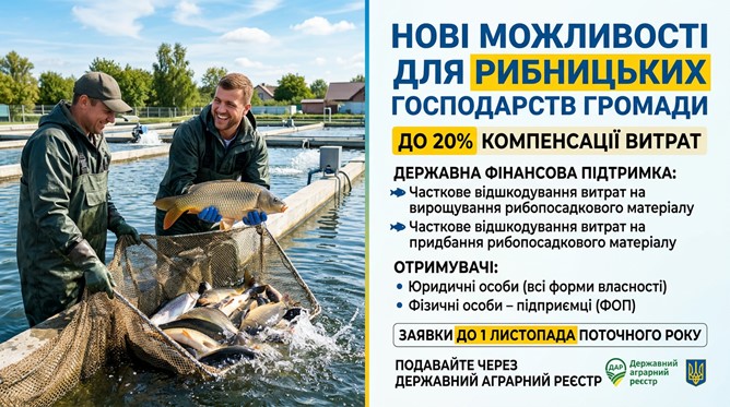 👉До 20% компенсації витрат: нові можливості державної підтримки для рибницьких господарств громади