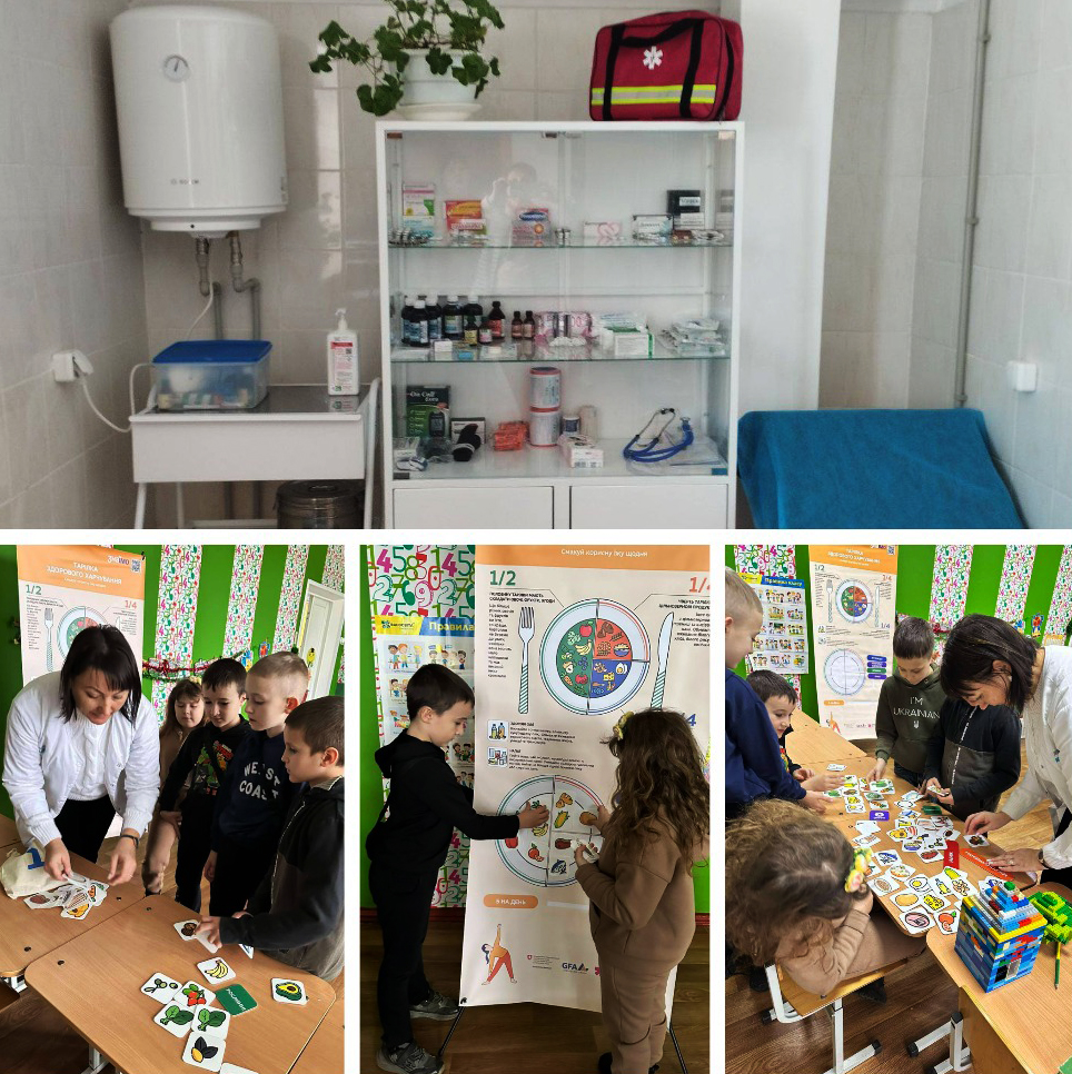 Окрім медичного обладнання, проєкт “Діємо для здоров’я” подарував школі цікаву виставку-гру, присвячену темі здорового харчування. Це не просто інформаційні стенди, а сучасний пізнавальний простір. Завдяки інтерактивним елементам, ігровим завданням та наочним прикладам, учні в доступній формі вивчають принципи збалансованого раціону, дізнаються про важливість вітамінів і мікроелементів, необхідність регулярного приймання їжі та поступово формують корисні харчові звички. Школярі вчаться робити усвідомлений вибір на користь здорових продуктів, що сприяє формуванню культури харчування та відповідального ставлення до власного здоров’я.