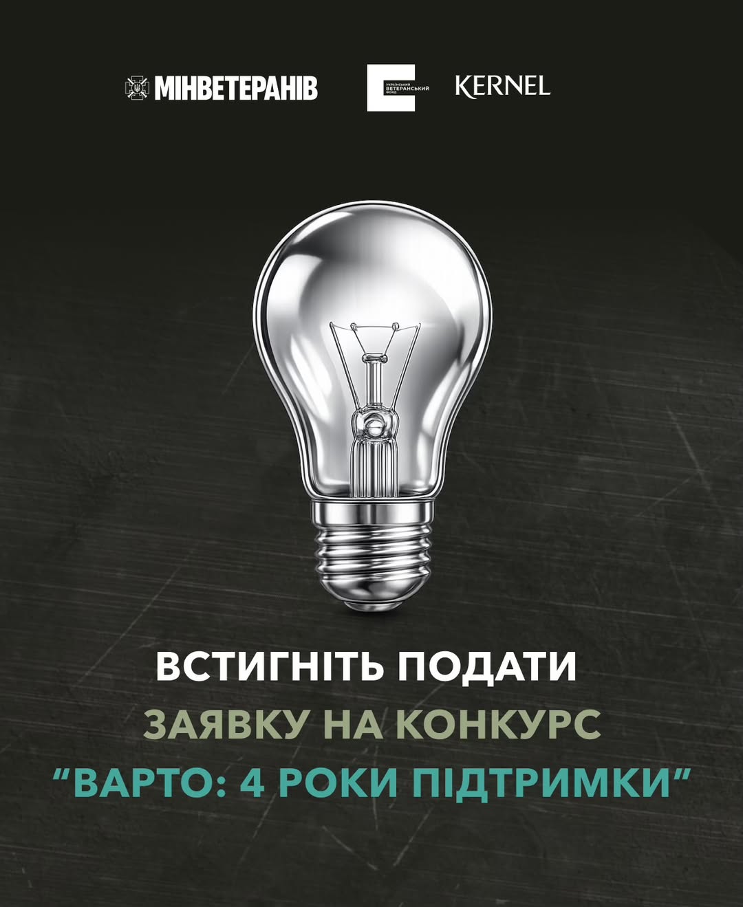 Розпочніть або розвиньте власний бізнес за допомогою грантової підтримки! Український ветеранський фонд спільно з компанією Kernel оголошує конкурс «Варто: 4 роки підтримки», що надає унікальну можливість отримати фінансування для ветеранських проєктів. Останній день подання заявок – завтра, 17 лютого, о 18:00. Не пропустіть свій шанс на успішний старт або розширення вашого бізнесу!