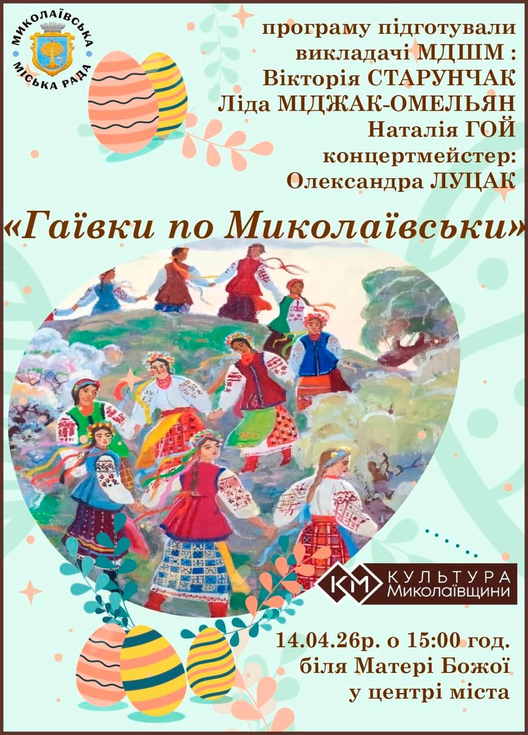 Запрошуємо мешканців та гостей громади на святкову програму «Гаївки по Миколаївськи», підготовлену викладачами Миколаївської дитячої школи мистецтв.