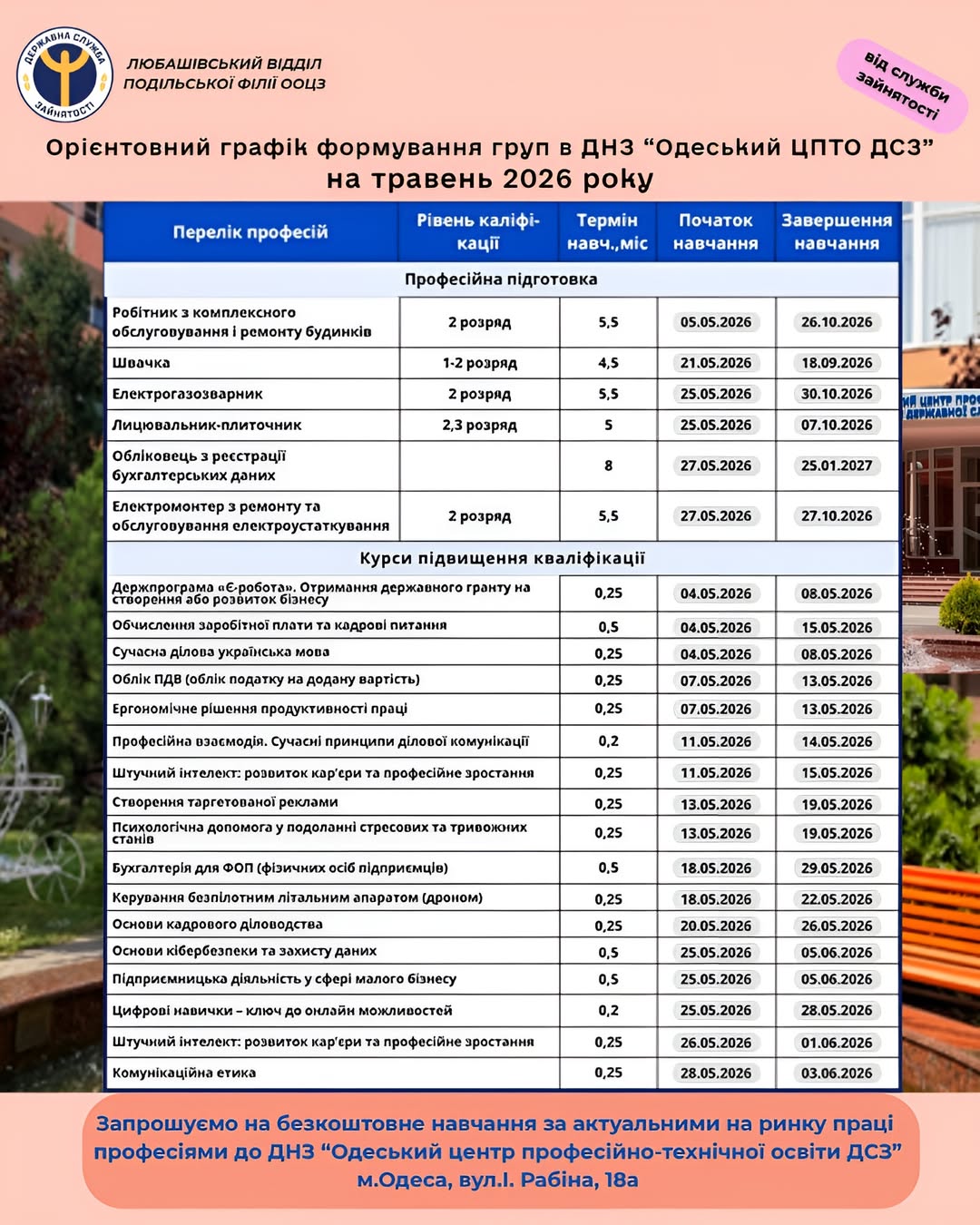 ДНЗ «Одеський центр професійно-технічної освіти Державної служби зайнятості» відкриває нові можливості для вашого кар’єрного розвитку!