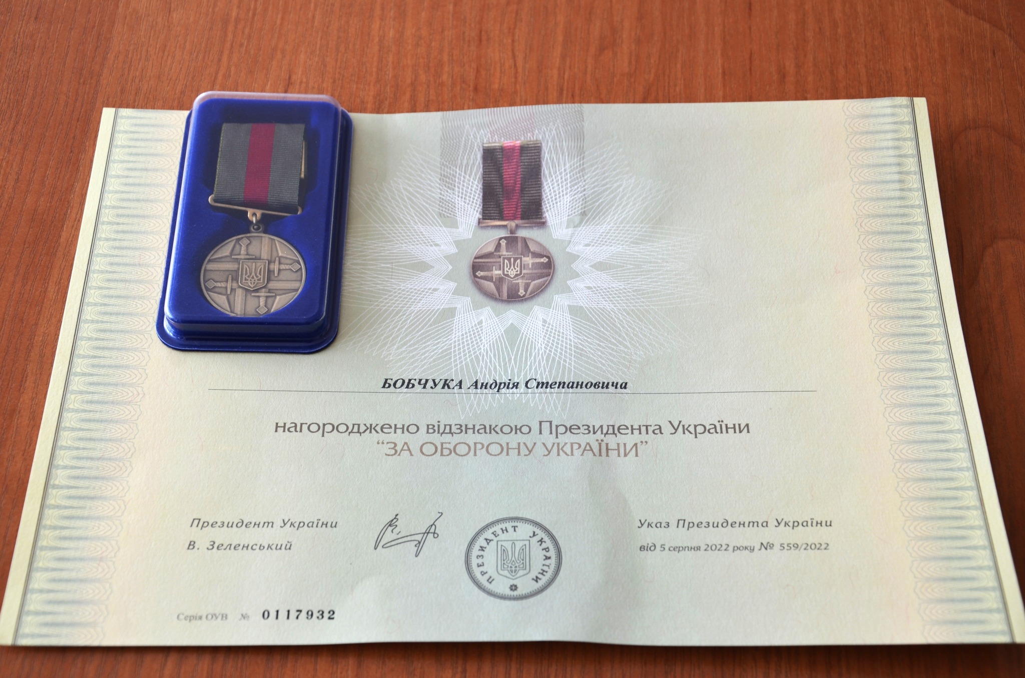 Захисник Андрій Бобчук нагороджений відзнакою Президента