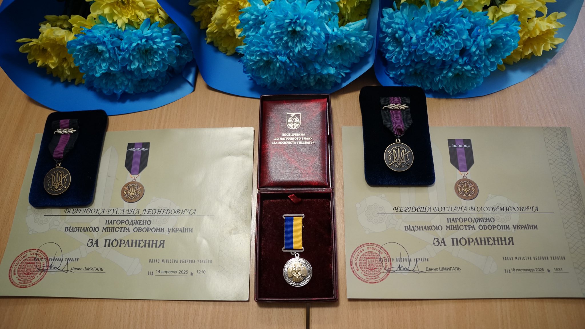 Нагороди військовослужбовцям вручили начальник Кропивницької районної військової адміністрації Віталій Пастушенко та заступник командира 1 батальйону безпілотних систем військової частини А7049 з психологічної підтримки персоналу, майор Андрій Неживий.