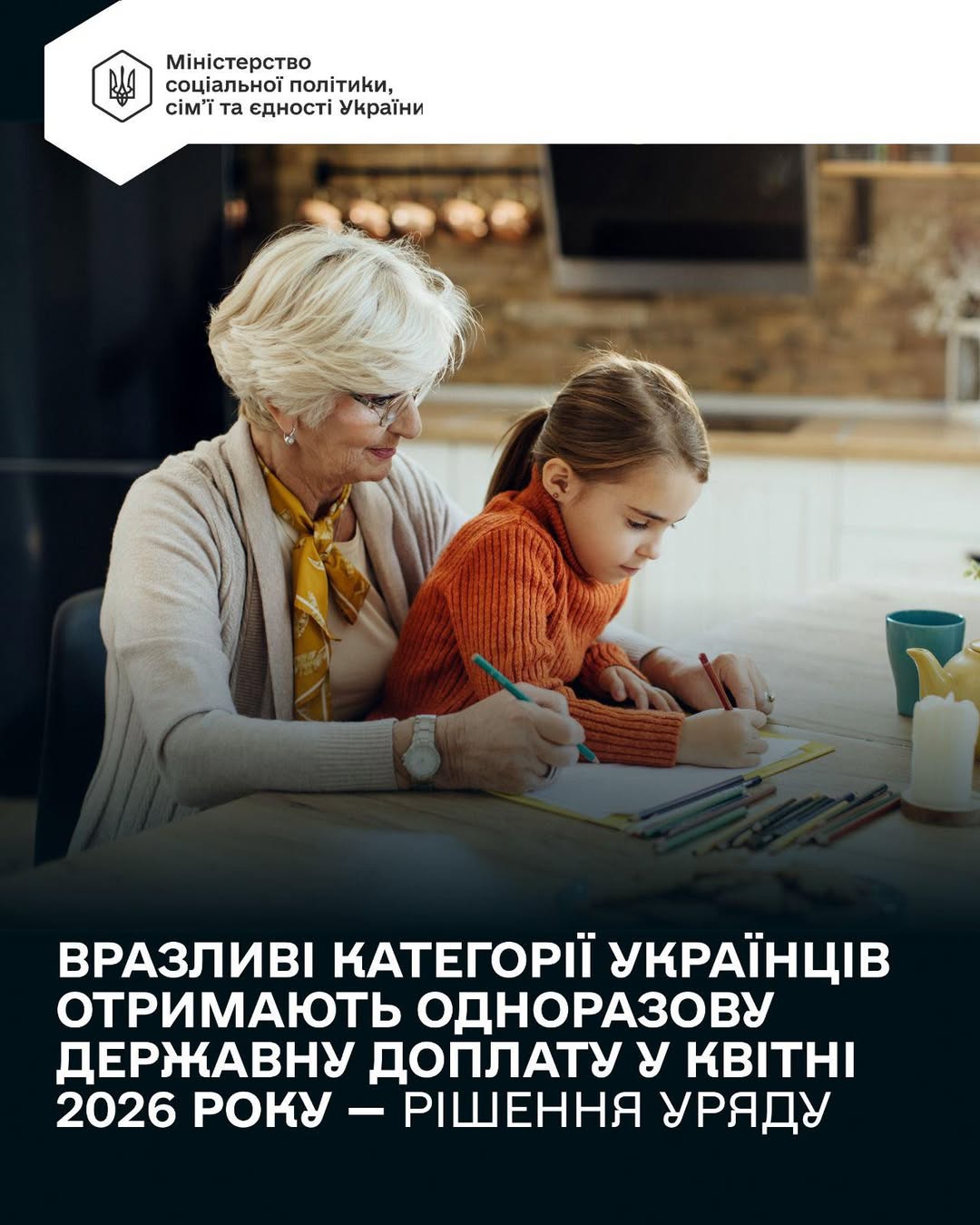 Одноразова доплата 1500 грн пенсіонерам та отримувачам допомоги у квітні
