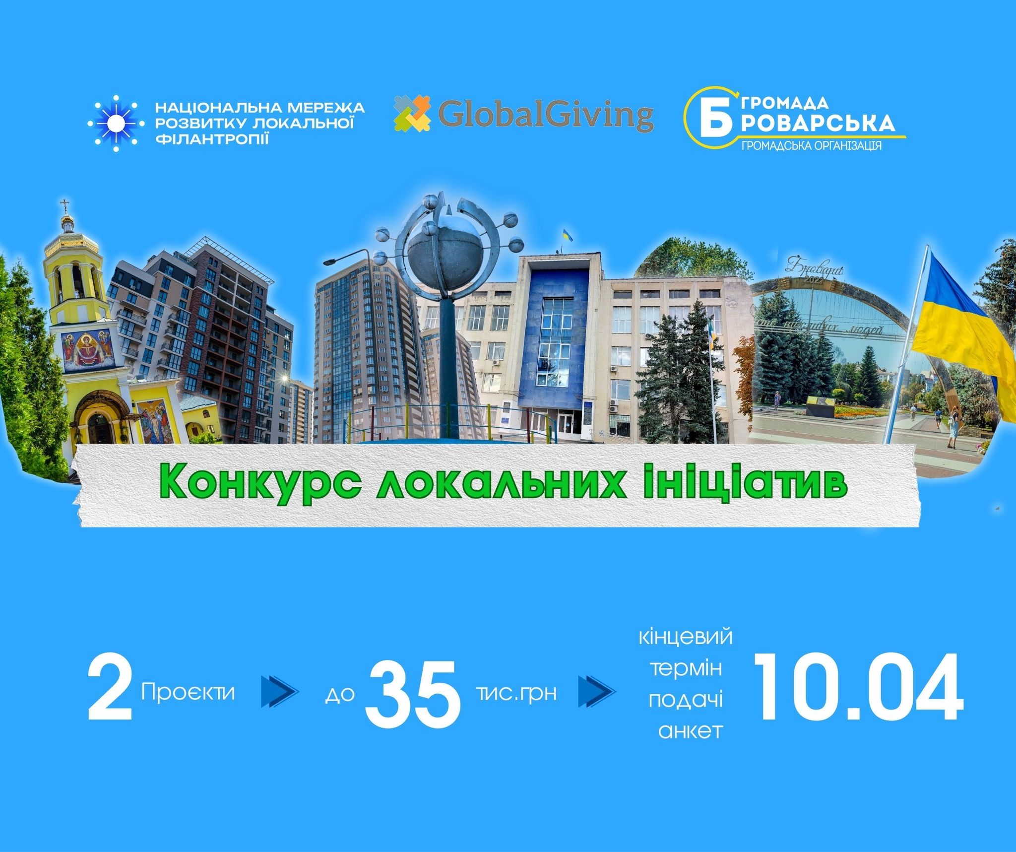 Громадська організація «Броварська громада» з радістю оголошує конкурс на найкращі локальні ініціативи. Ми запрошуємо всіх небайдужих мешканців громади подавати свої проєкти, які спрямовані на позитивні зміни.