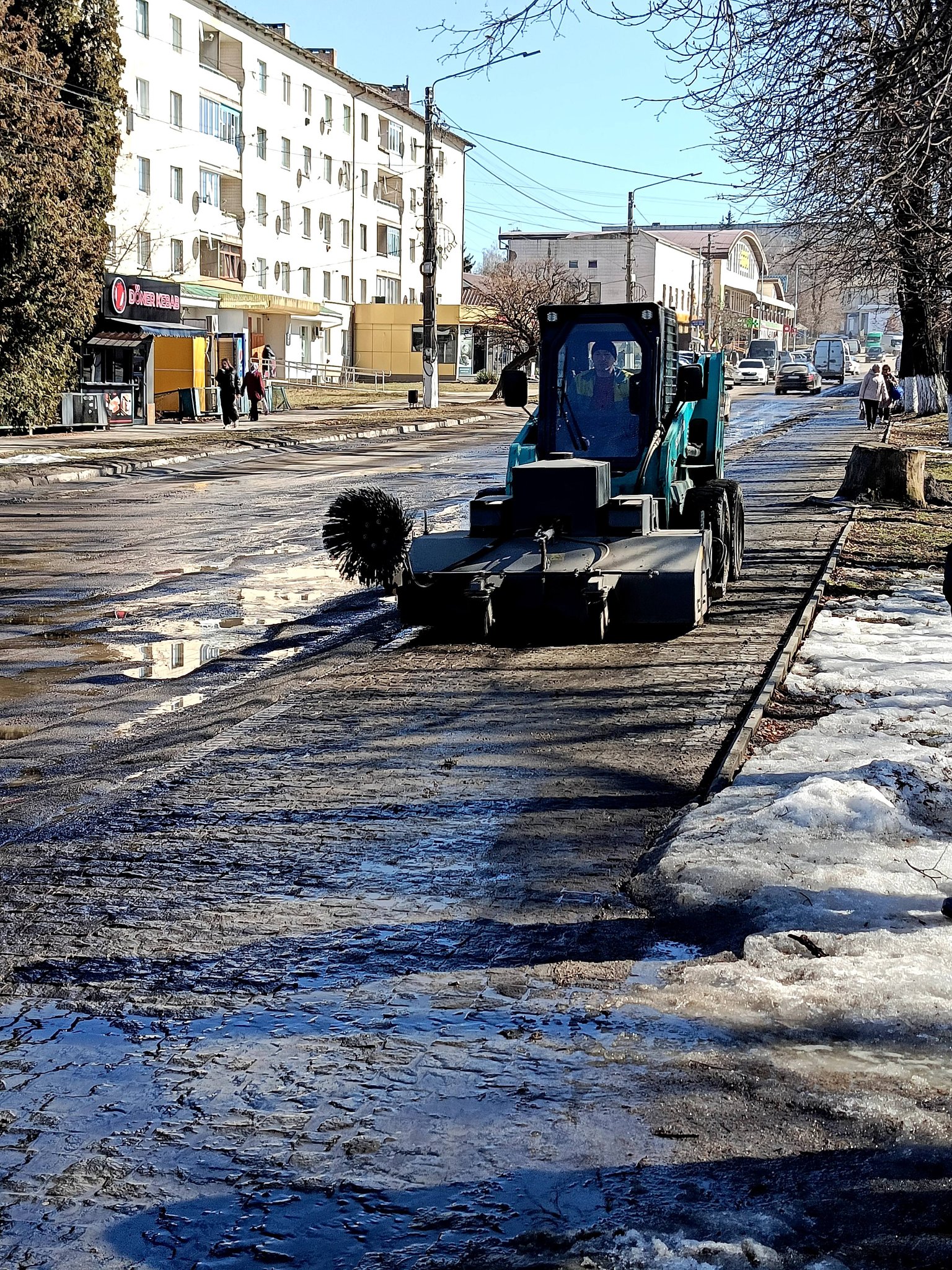 Також значну увагу приділено прибиранню та вивезенню змету з доріг. Працівники підприємства проводили очищення вулиць Володимирська та Цвіткова. Додатково, з використанням спеціальної техніки, було здійснено підмітання тротуарів у центральній частині міста. Це сприяє покращенню загального вигляду міста та санітарного стану.