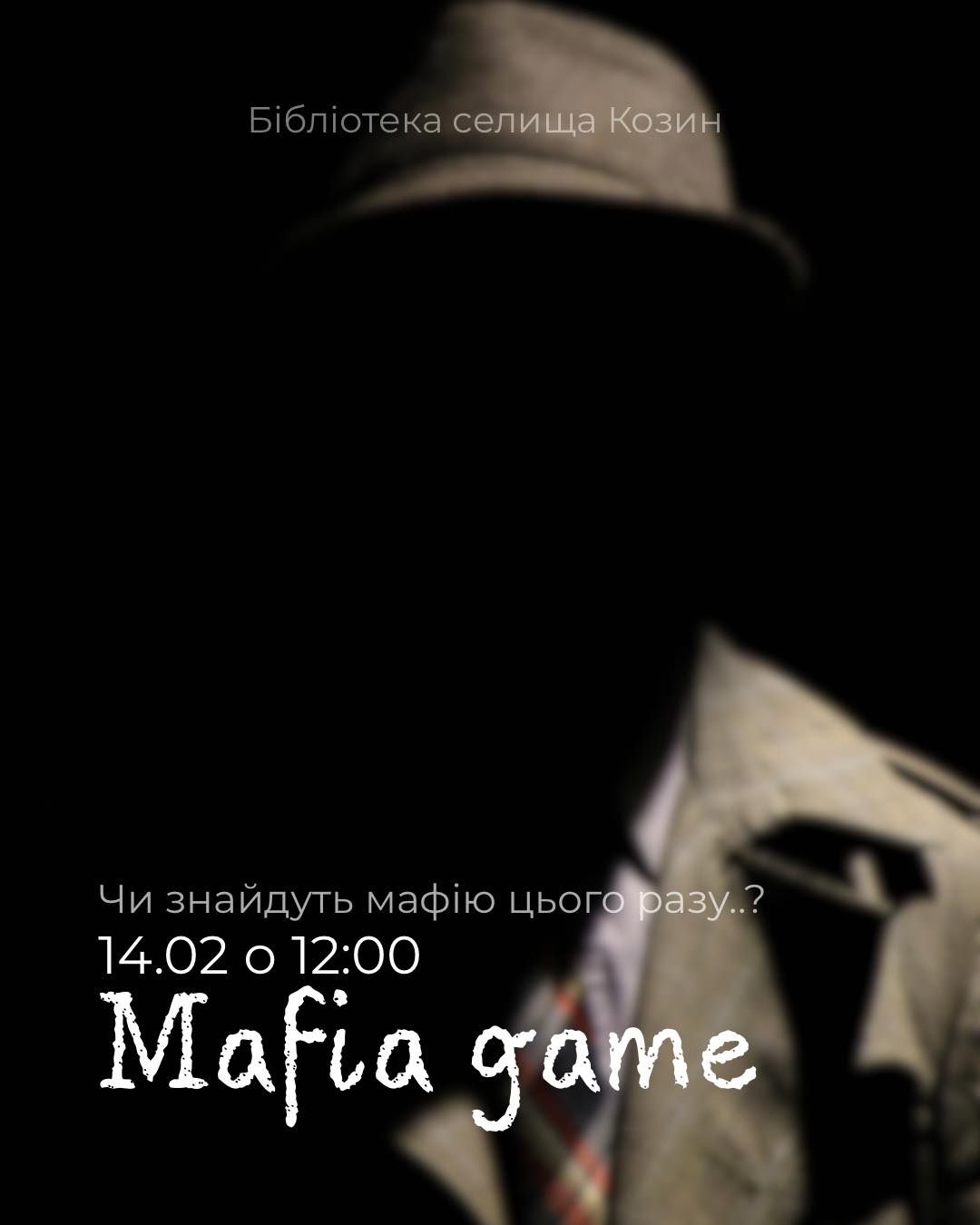 🕵️♂️ Чи готова ваша інтуїція до нового випробування? У Бібліотеці селища Козин 14 лютого о 12:00 відбудеться захоплива гра «Мафія», яка занурить вас у світ інтриг, підозр та несподіваних розв’язок. Це чудова нагода перевірити свої навички переконання та дедукції у дружній атмосфері.