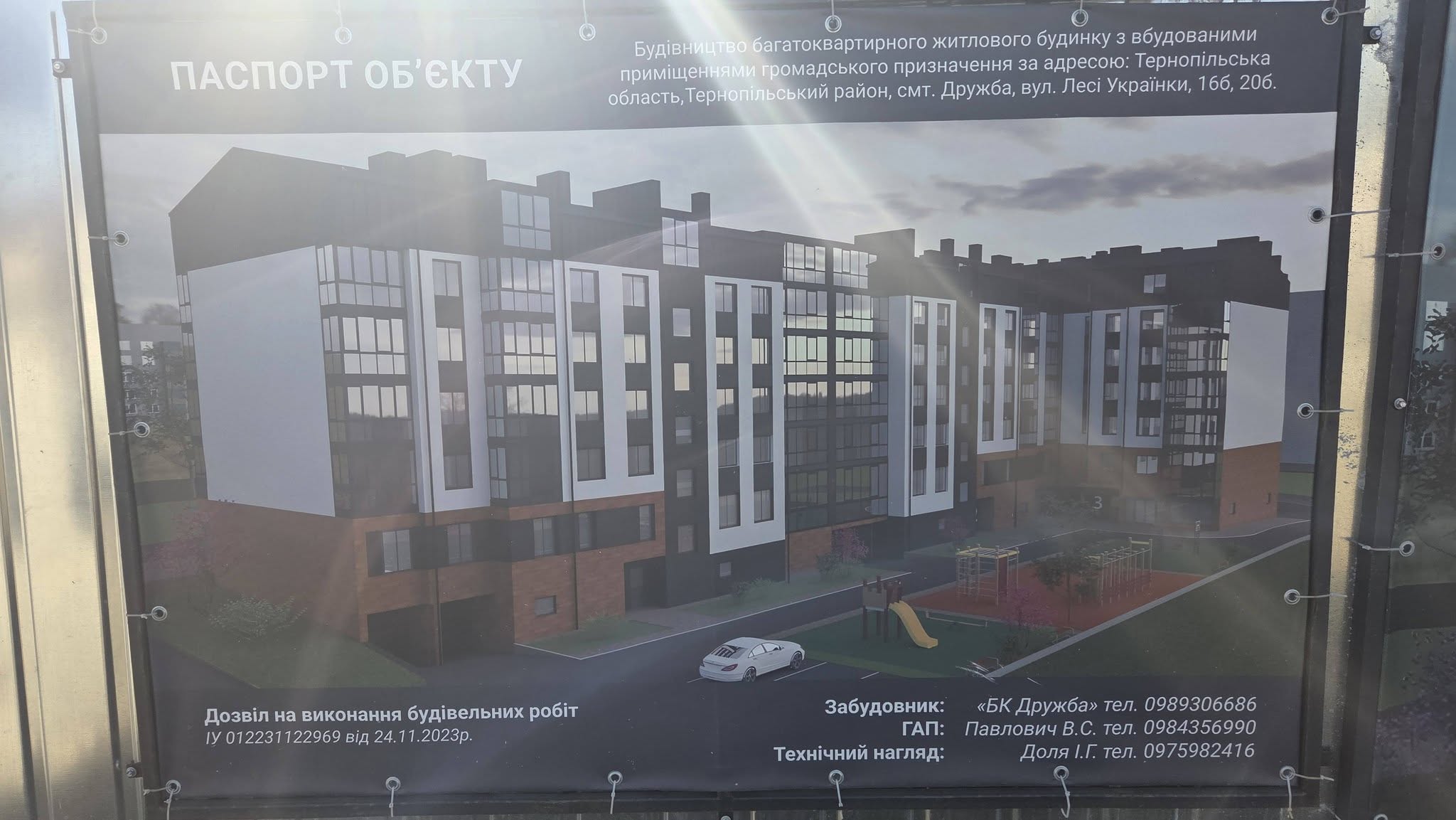 Одним із таких знакових проєктів є будівництво сучасного багатоквартирного житлового будинку з вбудованими приміщеннями громадського призначення на вулиці Лесі Українки, 16Б/20Б у смт Дружба. Житловий комплекс «Мирний» складатиметься з двох об’єднаних багатоповерхових будівель. Одна з них передбачає три п’ятиповерхові секції з підвальним поверхом. Реалізація цього амбітного будівництва здійснюється компанією ТОВ «Дружба».